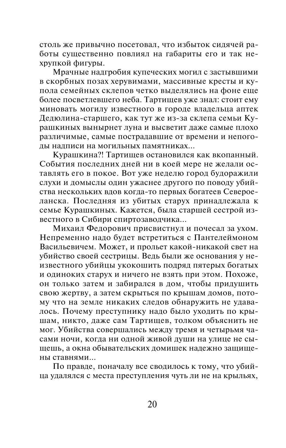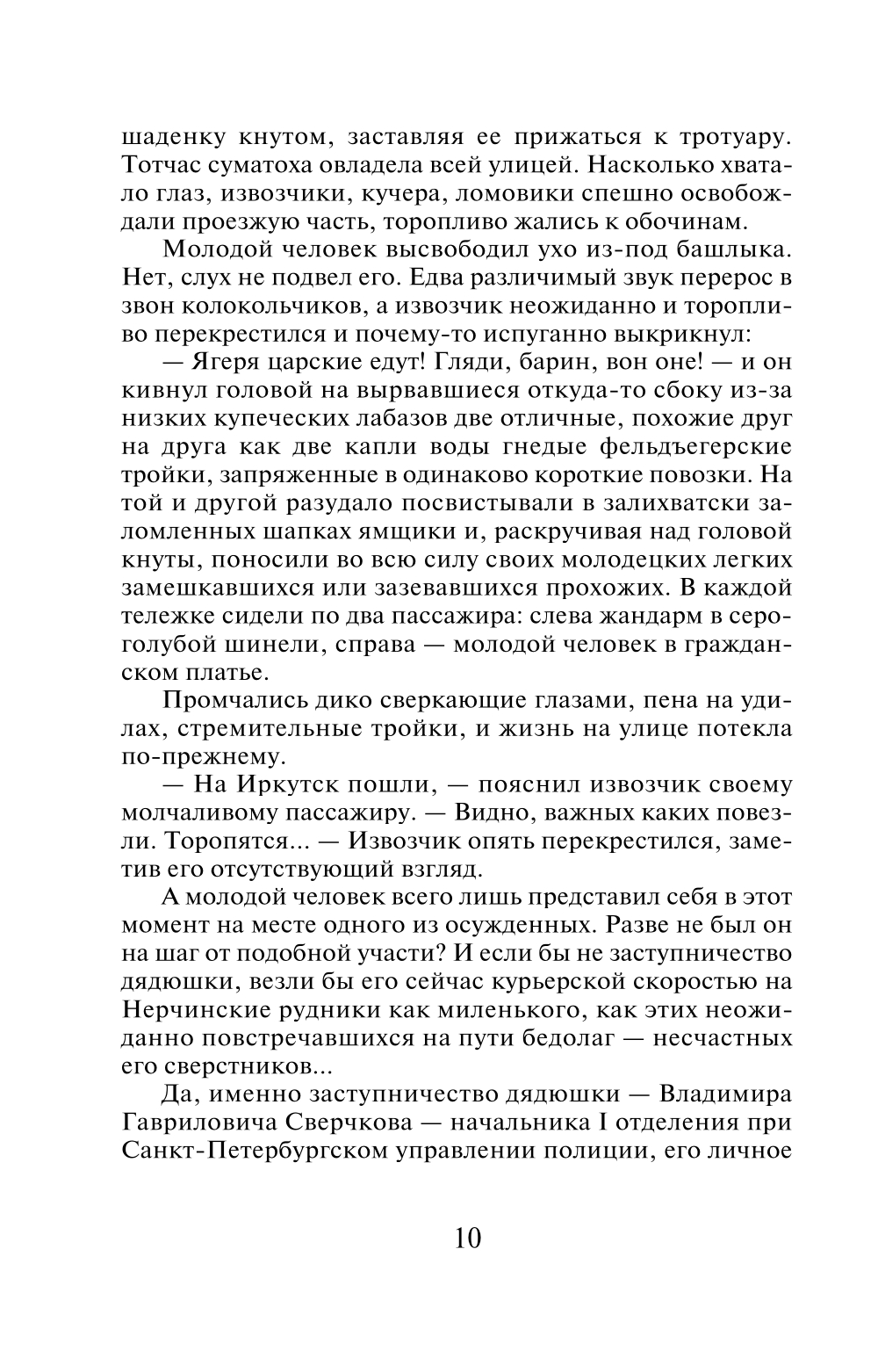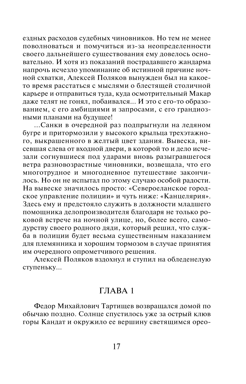 Провинциальный сибирский город взбудоражен цепью загадочных преступлений, в том числе убийством известного немецкого путешественника. Дело на контроле у губернатора. Им занимаются охранное отделение и жандармерия. Но успех все-таки на стороне уголовной полиции - ее начальника, бывалого сыщика Федора Тартищева и совсем юного агента - Алексея Полякова. Работают они слаженно, азартно, лихо, часто рискуя жизнью. Они не оставляют преступникам ни малейшего шанса избежать наказания. Потому что преступление - всегда преступление, даже если оно совершается ради благих целей.| Издательство | Эксмо |