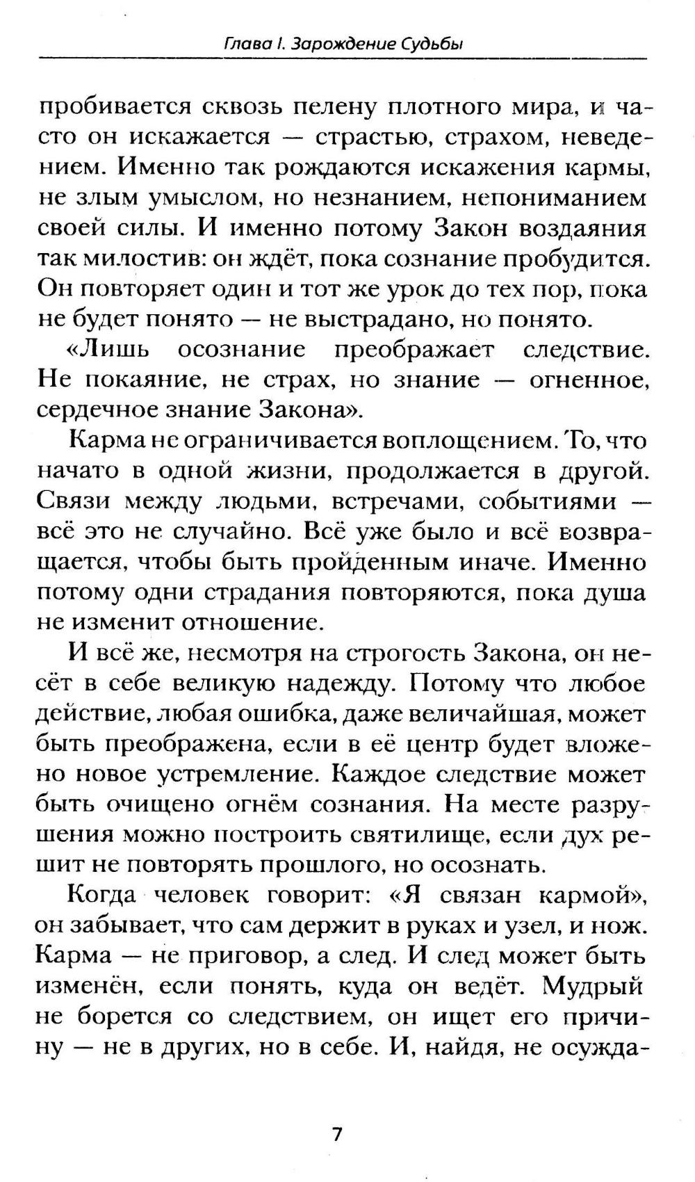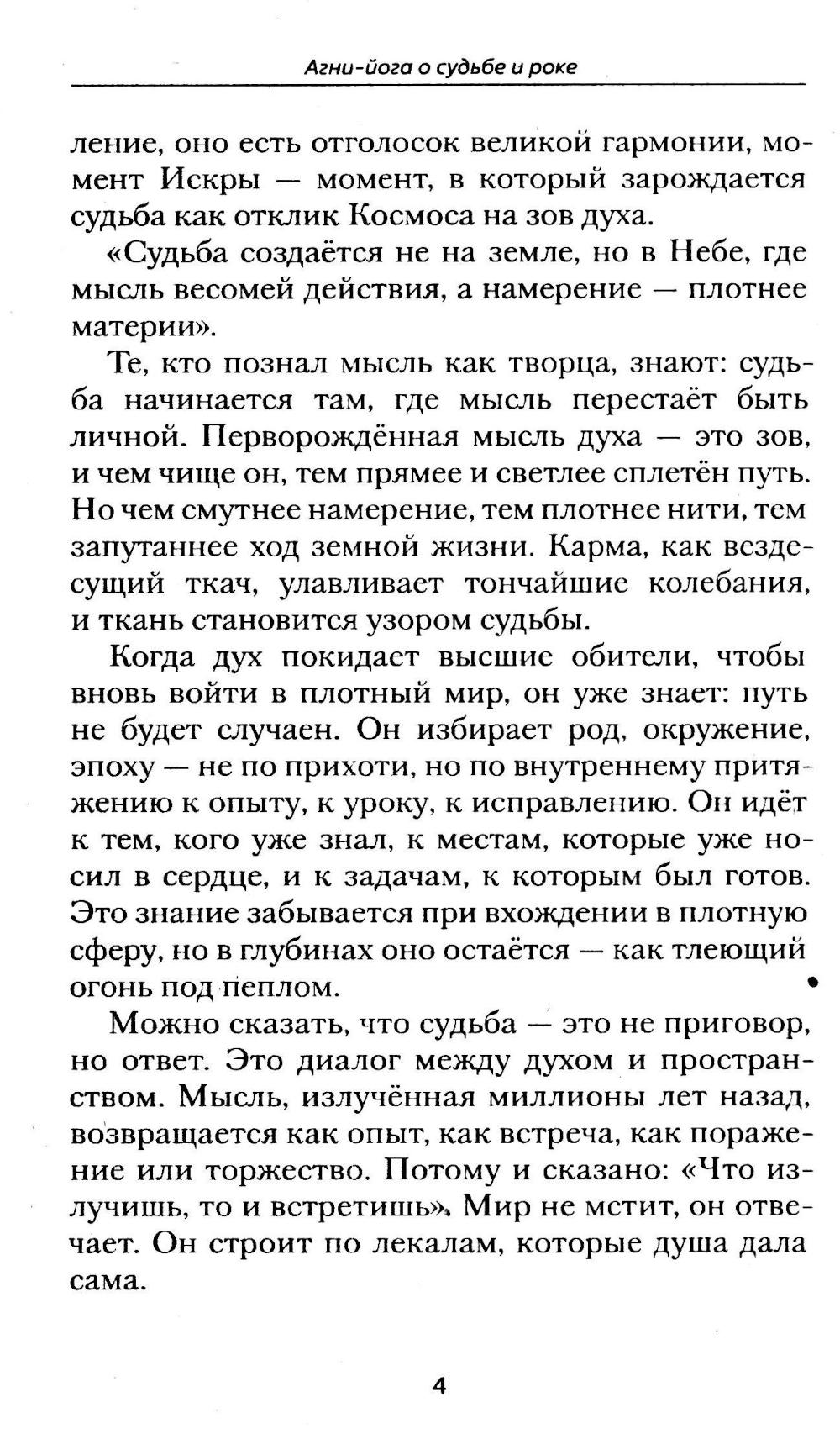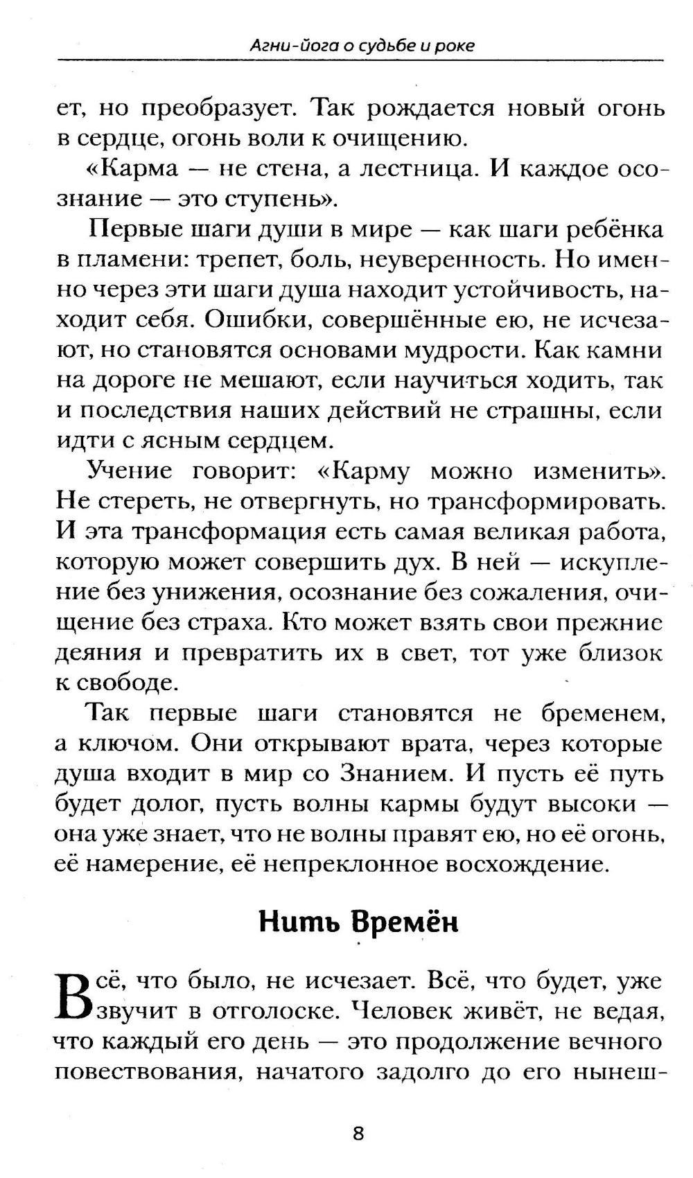 Каждый из нас хотя бы однажды задавался следующими вопросами: почему происходят те или иные события? Откуда берутся трудности? Что такое судьба - приговор или дар? И где проходит граница между тем, что нам «предписано» и тем, что мы выбираем сами? Эта книга, в основе которой лежит Учение Живой Этики (Агни-йоги) семьи Рерихов, - попытка найти ответы. В ней поднимаются темы судьбы, рока, кармы, свободы воли, испытаний и преображений. Посвящается всем тем, кто идёт путём беспредельного космического познания.| Издательство | Изд. Книга |