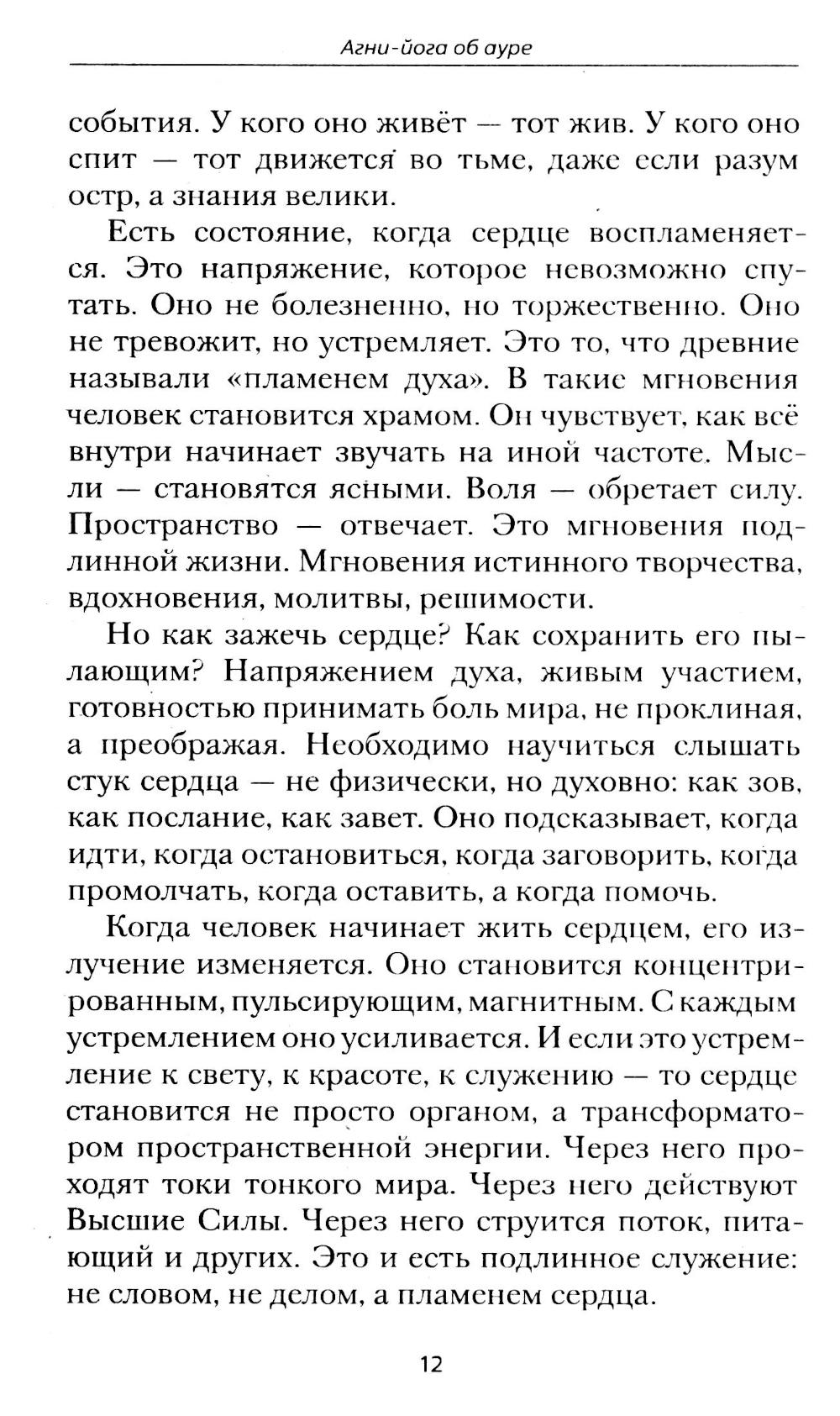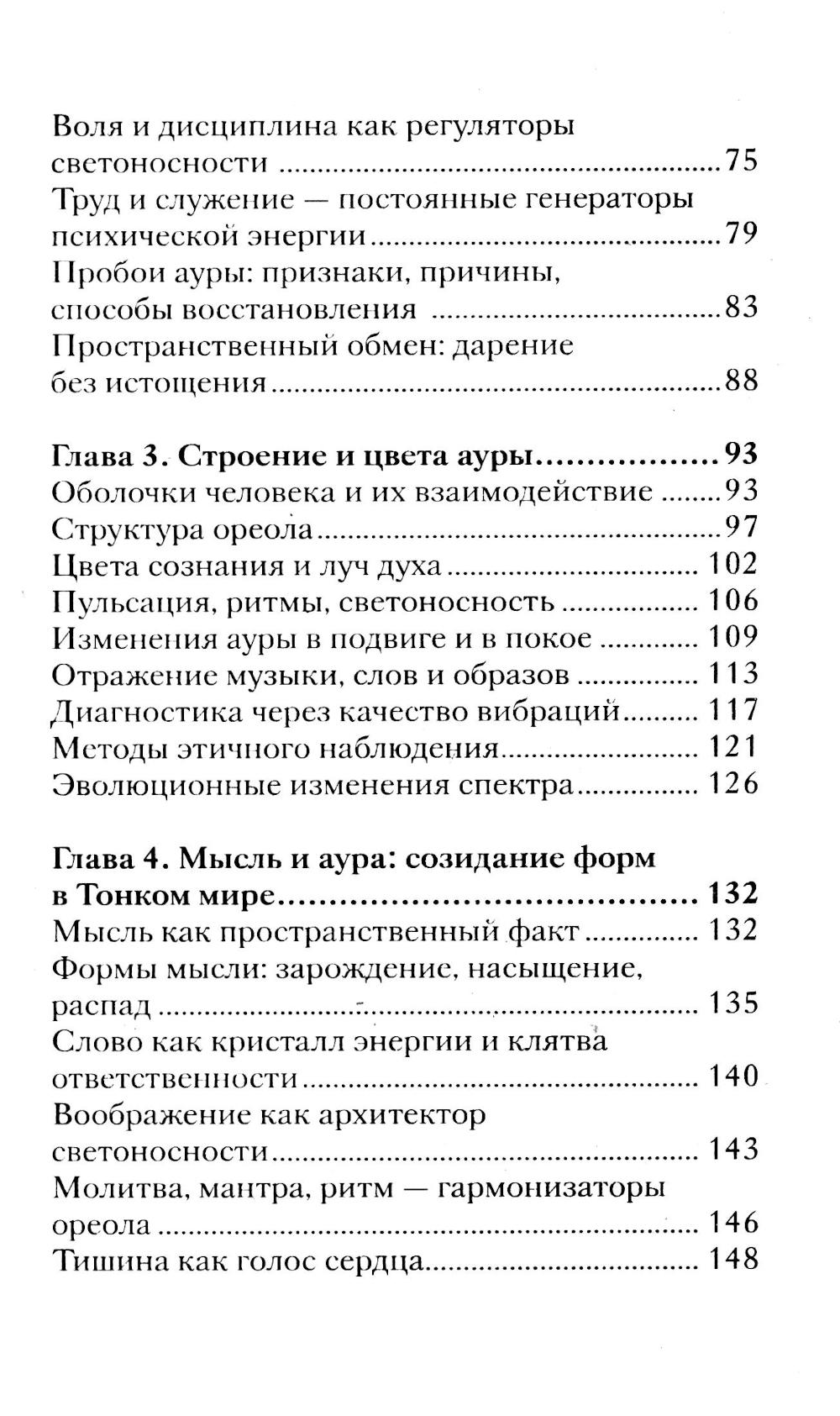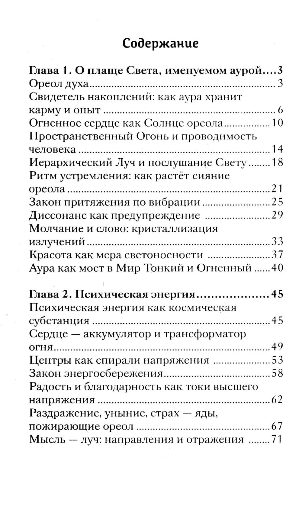 Эта книга стала результатом внимательного погружения в тексты Учения, размышлений его учеников, прикосновения к граням Агни-йоги и огненному опыту тех, кто шёл путём сердца. Она не только объясняет, что такое аура, но и рассказывает, что и почему влияет на неё и как это возможно изменить. В книге раскрываются темы радости как внутренней силе, тишины как огненном состоянии и служении как света в действии. Книга состоит из восьми глав, каждая из которых - ступень внутреннего преображения. Из них вы узнаете, как аура формируется, очищается, усиливается и становится каналом для света. Здесь описан путь ученика, который может стать началом новой реальности - более утончённой, осознанной и светоносной. Меняя себя, мы укрепляем ауру Земли.| Издательство | Книга |