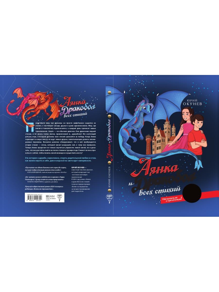 Юрий Окунев - известный писатель-фантаст, который возвращает нас к истокам настоящих приключений. Его книги - это не только захватывающие сюжеты, но и глубокие темы. Каждая книга Окунева - путешествие в уникальный мир, полный загадок, динамики и неожиданных сюжетных поворотов. Представьте мир, где драконы не просто мифические существа из сказок, а настоящие соседи, друзья и даже одноклассники. Мир, где магия и технологии переплетаются, а каждый день приносит новые приключения. Аянка - не обычная девочка. Она дракончик водной стихии. Внезапно в ней пробуждается новая сила - сила огня. Сможет ли она справиться с собой и победить в турнире по дракоболу, главной игре драконов разных стихий? Эта история о дружбе, взрослении, спорте, родительской любви и о том, как важно верить в себя, даже когда всё на свете идет наперекосяк.