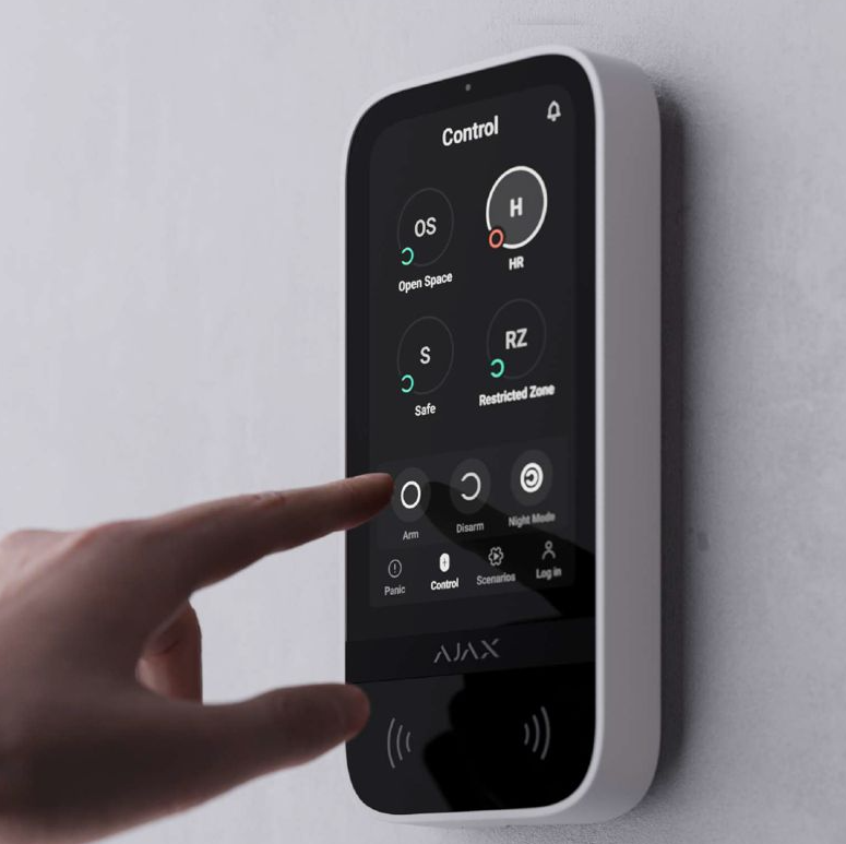 Ajax 58455 - это беспроводная сенсорная клавиатура с 5-дюймовым IPS-экраном для управления системой безопасности Ajax. Устройство позволяет назначать коды доступа, использовать карты или брелоки Tag и Pass, или смартфон (BLE), а также имеет яркое сенсорное управление, автоматическую регулировку подсветки и функции экстренного оповещения (паника, пожар, помощь). Клавиатура совместима с хабами Hub 2, Hub 2 Plus и ReX и обеспечивает удобное и безопасное управление системой охраны.