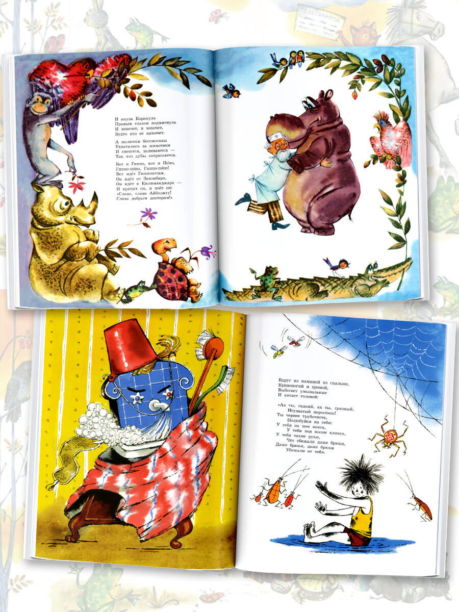 Интересно, под каким деревом сидел знаменитый ветеринар Айболит? В какой стране оно находилось? Наверное, всё-таки в России, ведь приходили к нему типичные среднерусские звери: волчица, зайчиха с зайчонком и барбос. Но вот пришла телеграмма из Африки, в которой сообщалось об ужасных болезнях, поразивших детёнышей африканских животных. И доктор, не раздумывая, отправился в путешествие, чтобы помочь бегемотикам, страусятам, слонятам, тигрятам, верблюжатам и даже акулятам! Вот так доктор из России! Настоящая медицина без границ. В книгу вошла также сказка в стихах «МОЙДОДЫР».| Издательство | Издательство "АСТ" |