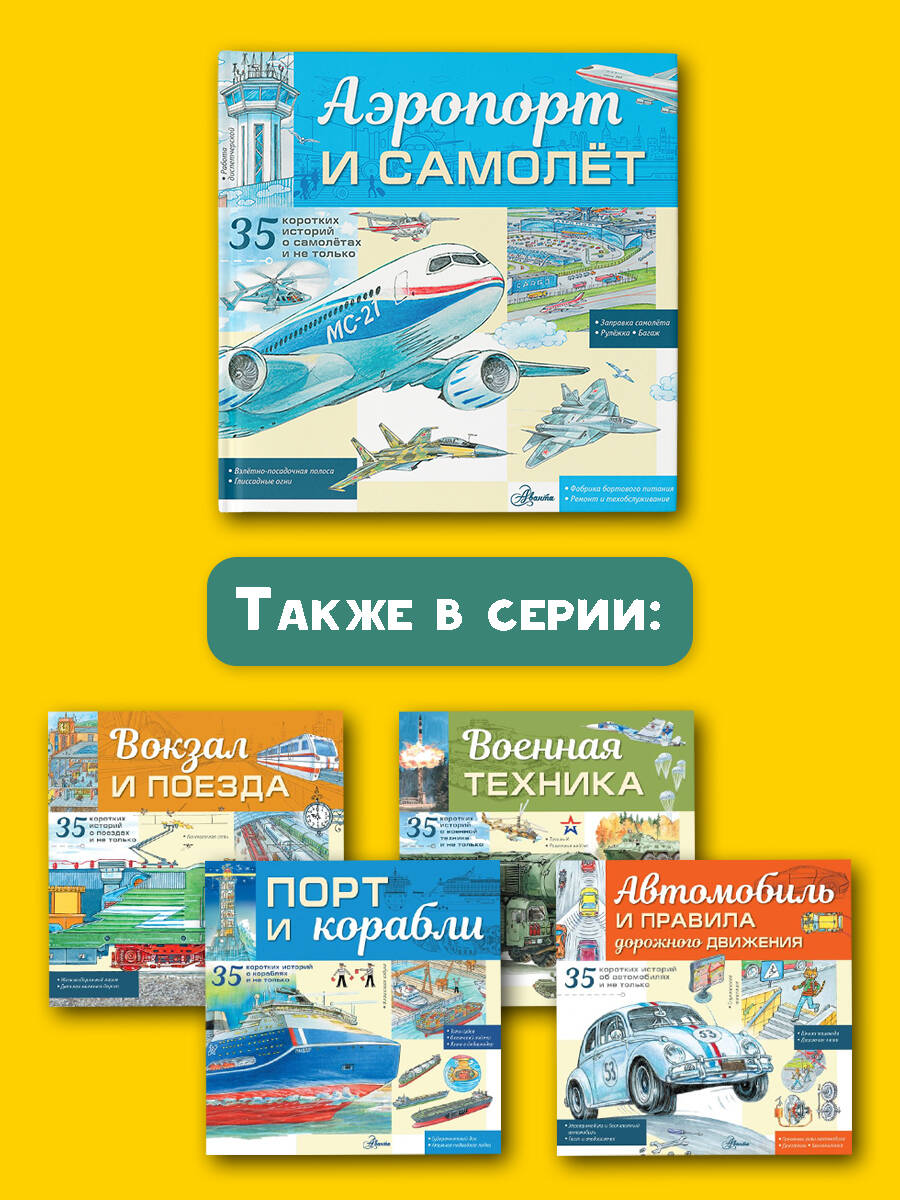 Пристегните ремни безопасности, мы отправляемся в увлекательное путешествие в мир техники! Эта энциклопедия, написанная популяризатором науки Владимиром Игоревичем Маловым, расскажет всё о самолётах и аэропорте, а также о разной аэродромной технике, особенностях предполётного досмотра, взлёта и посадки самолёта. Вы узнаете, что такое турбулентность, для чего нужны сигнальные огни, где находятся закрылки и предкрылки, как устроена кабина пилота. Готовы? Полный вперёд! Для младшего школьного возраста.| Издательство | АСТ |