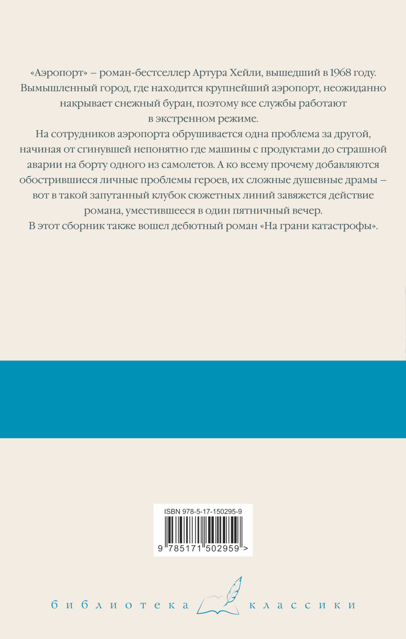 Два культовых романа под одной обложкой. Артур Хейли - легендарный автор производственных романов. Его романы переведены на 38 языков и разошлись по миру тиражом в 170 000 000 экземпляров. Книги Хейли неоднократно экранизировались. Романы Хейли с одной стороны привлекают тщательным вниманием к мельчайшим деталям работы того или иного общества или механизма, а с другой - увлекательным детективным сюжетом, драматическими коллизиями и любовными переживаниями героев! Артур Хейли неустанно повторял, что все его персонажи имеют прототипы в реальной жизни. Будучи мастером производственного романа, Хейли задолго до написания книги досконально изучал отрасль. Наверное, поэтому каждая его книга стала абсолютным бестселлером.| Издательство | АСТ |