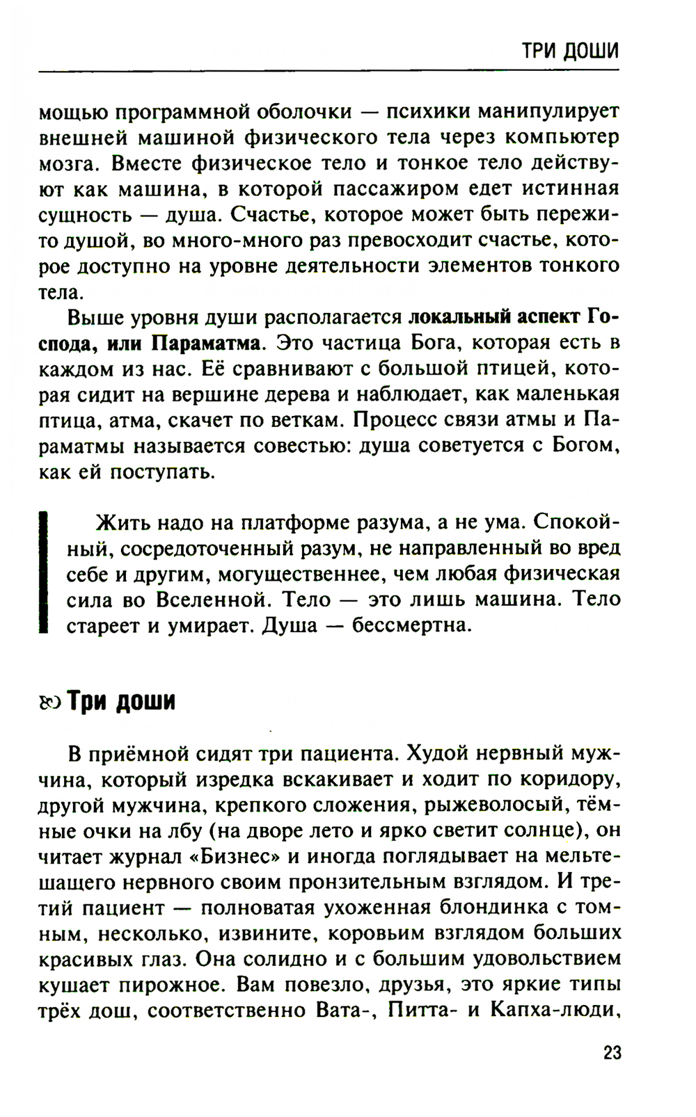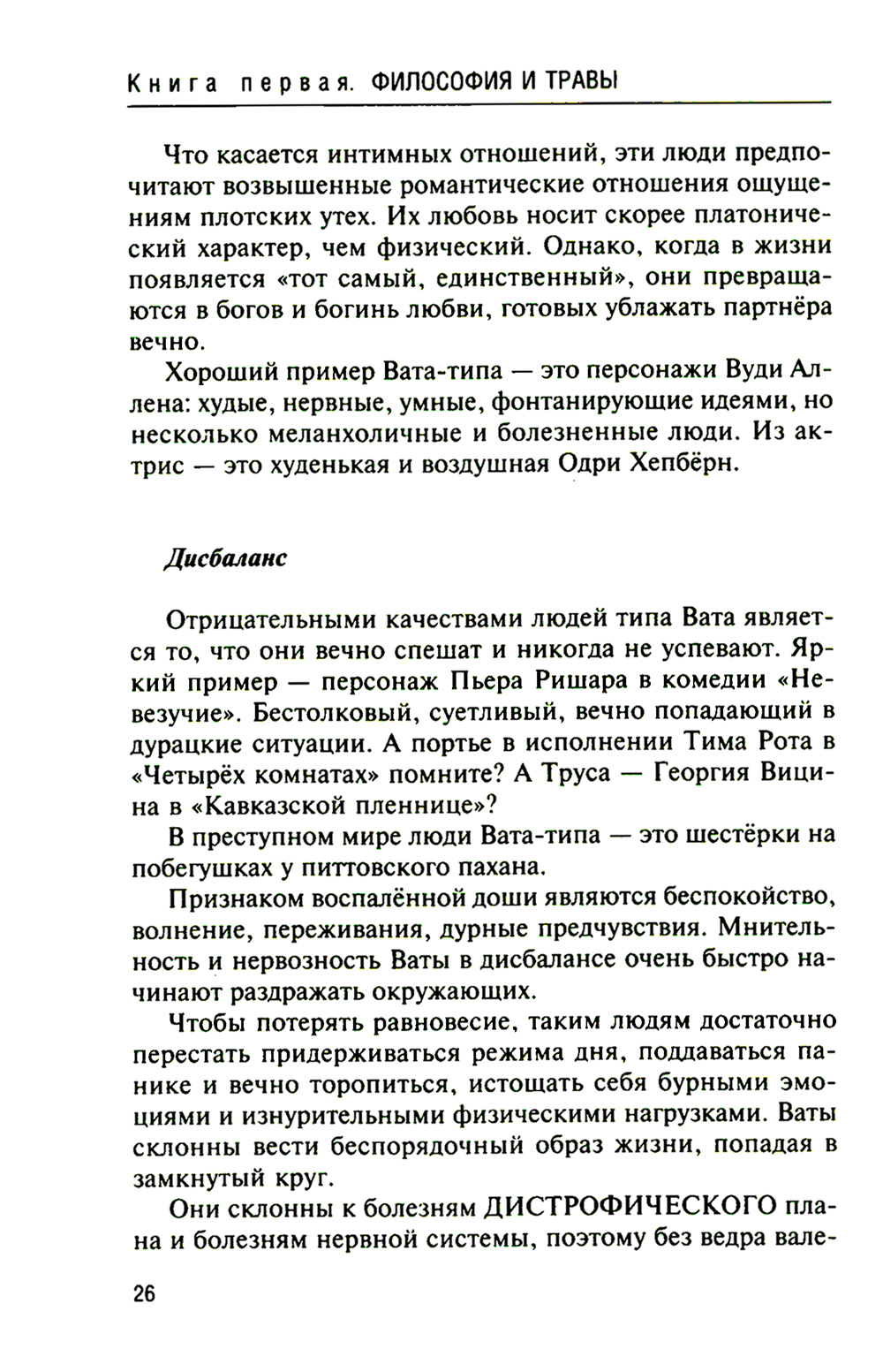 Если ты ищешь альтернативу западной медицине, обратись к Аюрведе: это наука не о болезнях - это наука о Жизни. Применение этой древней медицинской системы даёт фантастические результаты. Она не обходит вниманием повседневную жизнь, питание, психологические отношения, карьеру, состояние духа и, наконец, применение целебных растений. Очень важно то, что с точки зрения Аюрведы в книге описаны не только индийские растения, но и лекарственные травы средних широт, так что любой россиянин без «зелёного лекарства» не останется! Автор увлекательно, с юмором преподнёс своё видение древних текстов и добавил в них современности. Удивительно просто и ёмко даны самые сложнейшие для понимания истины. Эта книга - действительно инструкция для долгой и здоровой жизни. Читайте, ибо кто познал Тайну, тот обретёт Мудрость!| Издательство | Центрполиграф |
