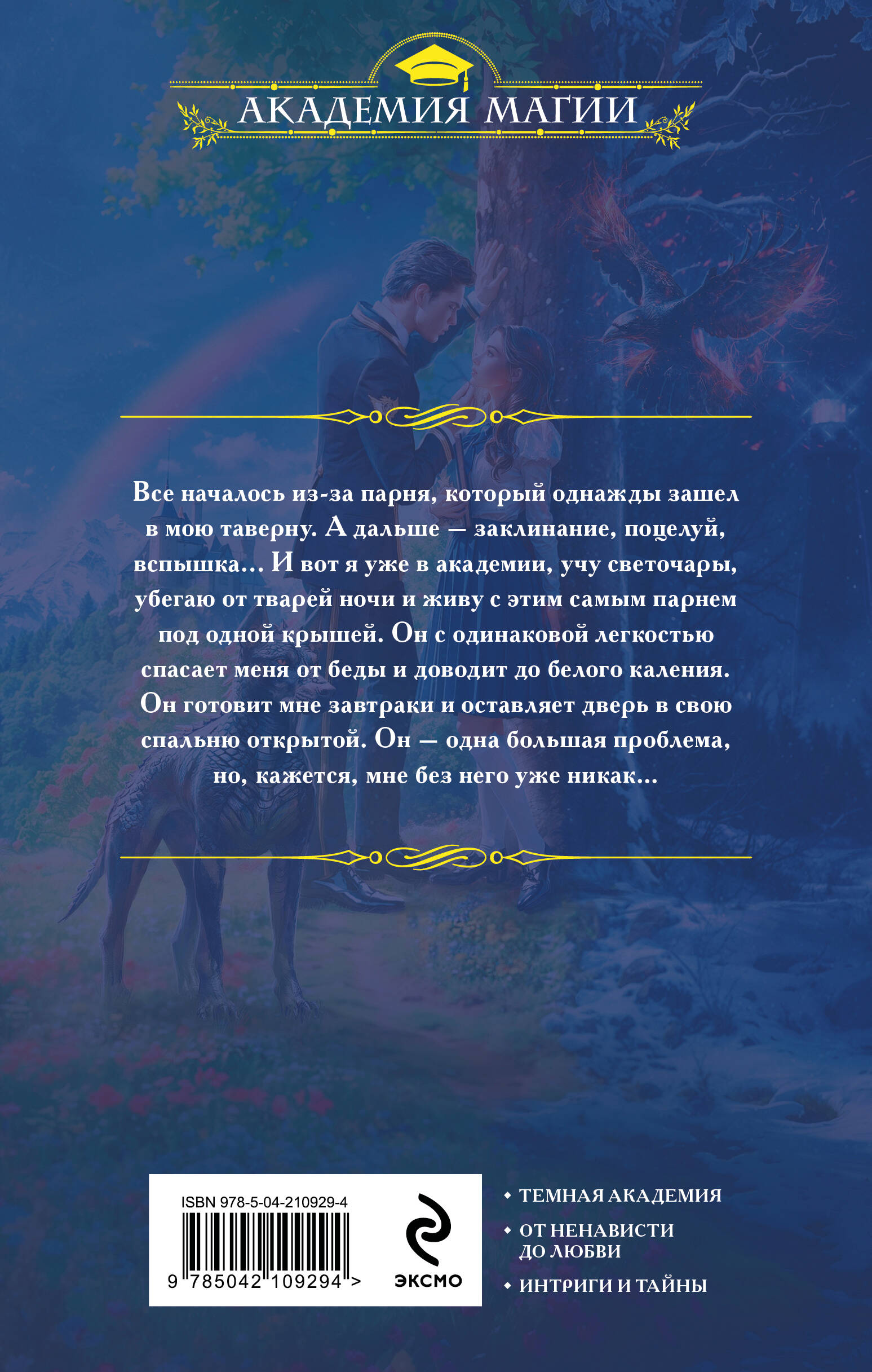 Все началось из-за парня, который однажды зашел в мою таверну. А дальше - заклинание, поцелуй, вспышка… И вот я уже в академии, учу светочары, убегаю от тварей ночи и живу с этим самым парнем под одной крышей. Он с одинаковой легкостью спасает меня от беды и доводит до белого каления. Он делает мне завтраки и оставляет дверь в свою спальню открытой. Он - одна большая проблема, но, кажется, мне без него уже никак... Пять причин: 1. Извечный конфликт света и тьмы в любимом многими жанре янг-адалт. 2. Магическая академия, плетение чарослов и приручение тварей ночи. 3. Маг-чаросвет, наследник великого дома, и сиротка из сумерек - разные, но созданные друг для друга. 4. Ослепительная любовь, которой нельзя сопротивляться. 5. Опасные приключения, интриги врагов и меняющая мир тайна из прошлого.| Издательство | ООО "Издательство "Эксмо" |