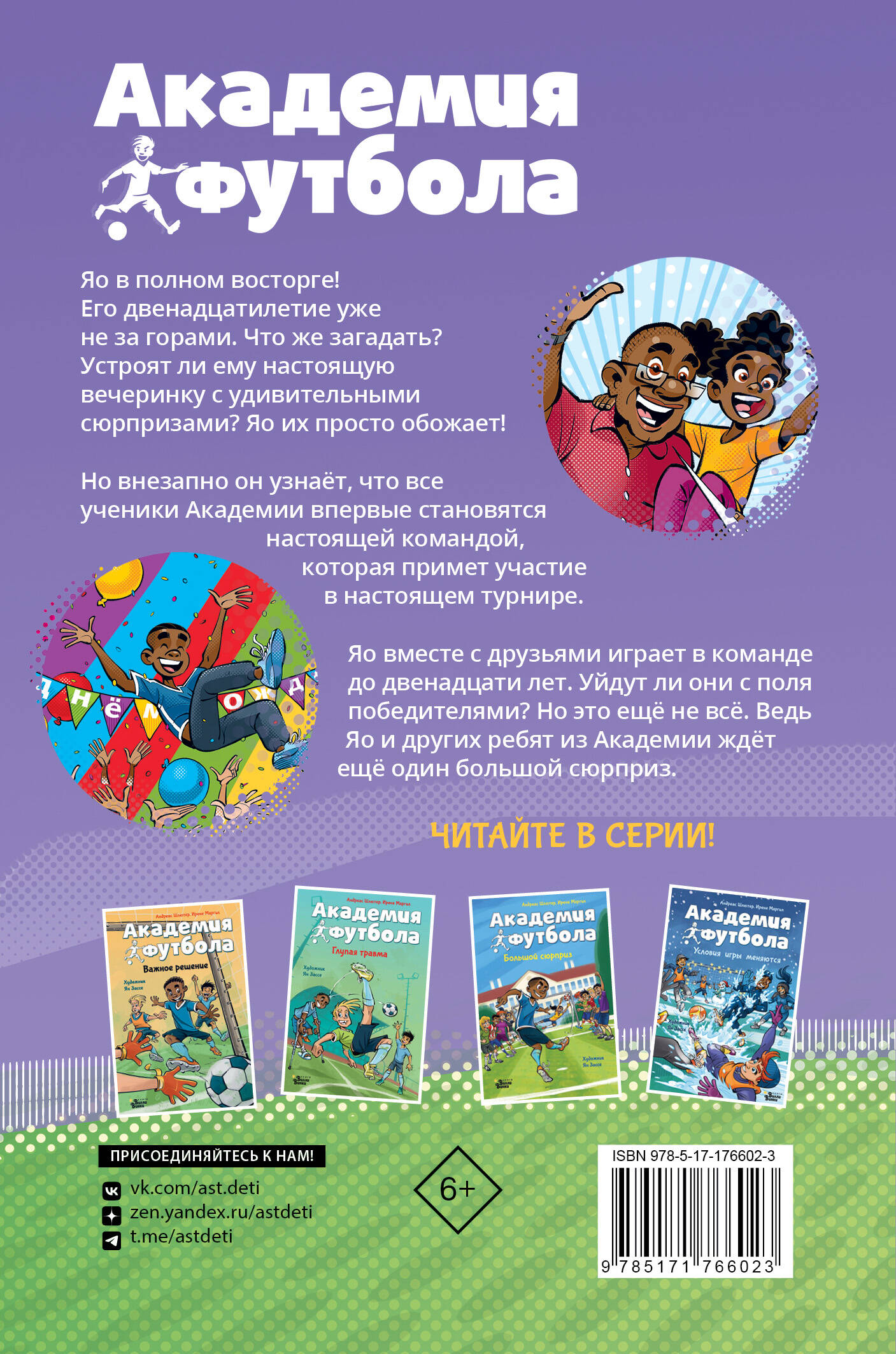 Яо в полном восторге! Его двенадцатилетие уже не за горами. Что же загадать? Устроят ли ему настоящую вечеринку с удивительными сюрпризами? Яо их просто обожает! Но внезапно он узнает, что все ученики Академии впервые становятся настоящей командой, которая примет участие в настоящем турнире. Яо вместе с друзьями играет в команде до двенадцати лет. Уйдут ли они с поля победителями? Но это ещё не всё. Ведь Яо и других ребят из Академии ждёт ещё один большой сюрприз.| Издательство | Издательство "АСТ" |