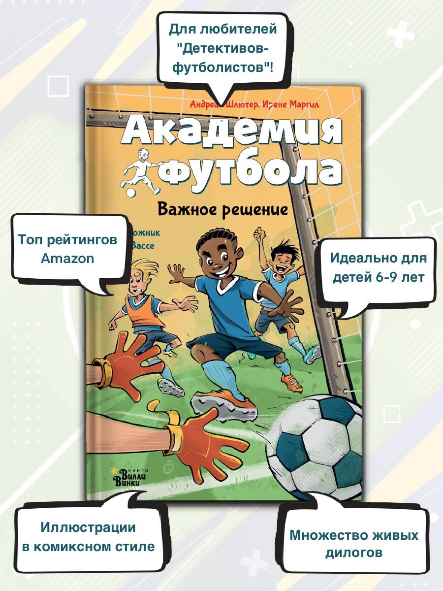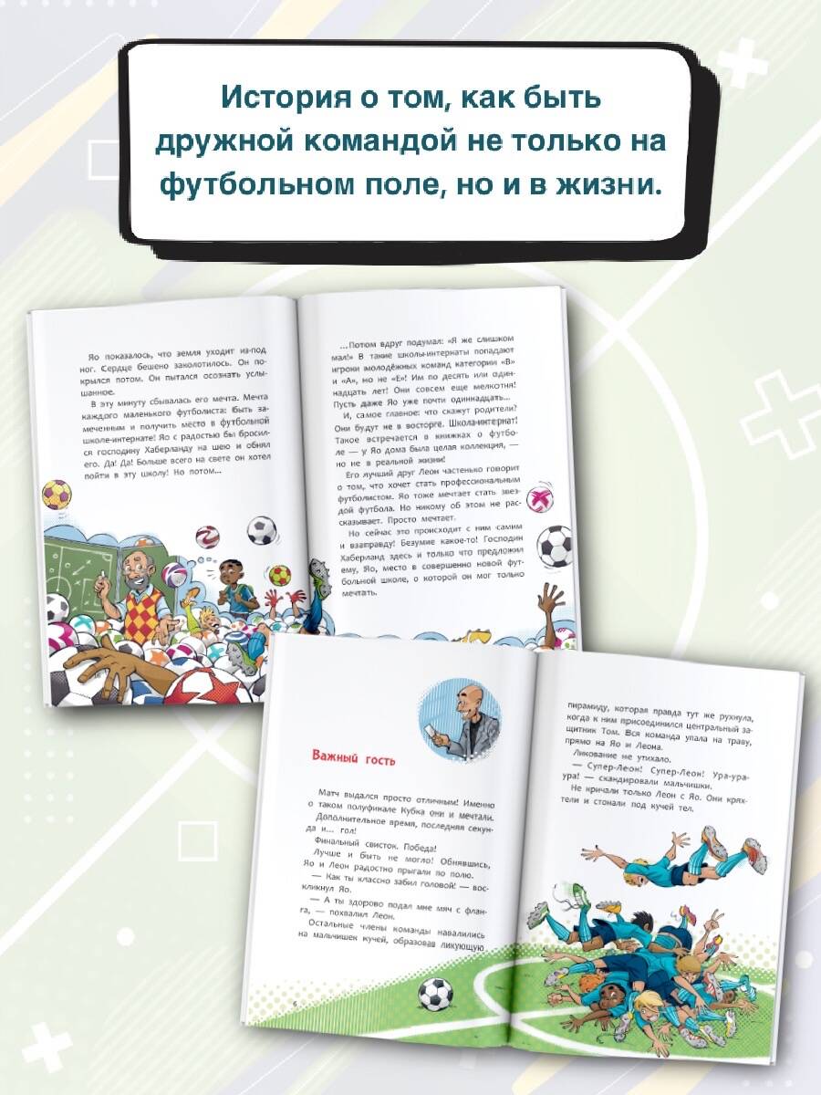 Одиннадцатилетний Яо играет в футбол за небольшой клуб в своём родном городе. Его мечта - стать профессионалом. И вот однажды удача в буквальном смысле постучалась в его дверь: Яо пригласили в новую Академию футбола, куда отбирают самых талантливых и подающих надежду юных игроков со всей страны! В его жизни внезапно поменялось всё: общая комната на шесть человек в школе-интернате вместо собственной спальни дома, тоска по дому, новые друзья и поиск своего места в команде, тяжёлые тренировки, выходящие далеко за рамки отработки обычных ударов ногами. Будет нелегко! Но новая команда будет стараться справиться со всеми сложностями вместе! Идеальное чтение для всех юных любителей футбола, рассказывающее о школьных буднях в настоящей футбольной академии, дружбе, справедливости и командном духе, со множеством цветных иллюстраций в комиксном стиле.| Издательство | Издательство "АСТ" |