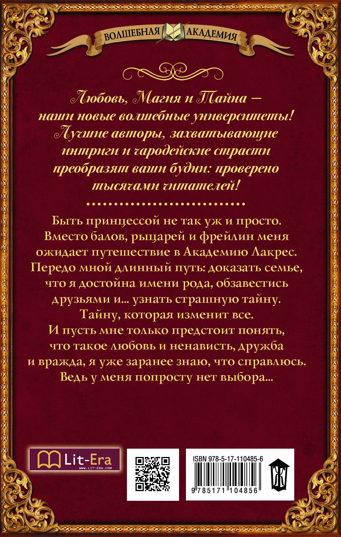 Быть принцессой не так уж и просто. Вместо балов, рыцарей и фрейлин меня ожидает путешествие в Академию Лакрес. Передо мной длинный путь: доказать семье, что я достойна имени рода, обзавестись друзьями и... узнать страшную тайну. Тайну, которая изменит все. И пусть мне только предстоит понять, что такое любовь и ненависть, дружба и вражда, я уже заранее знаю, что справлюсь. Ведь у меня попросту нет выбора...| Издательство | ИЗДАТЕЛЬСТВО "АСТ" |