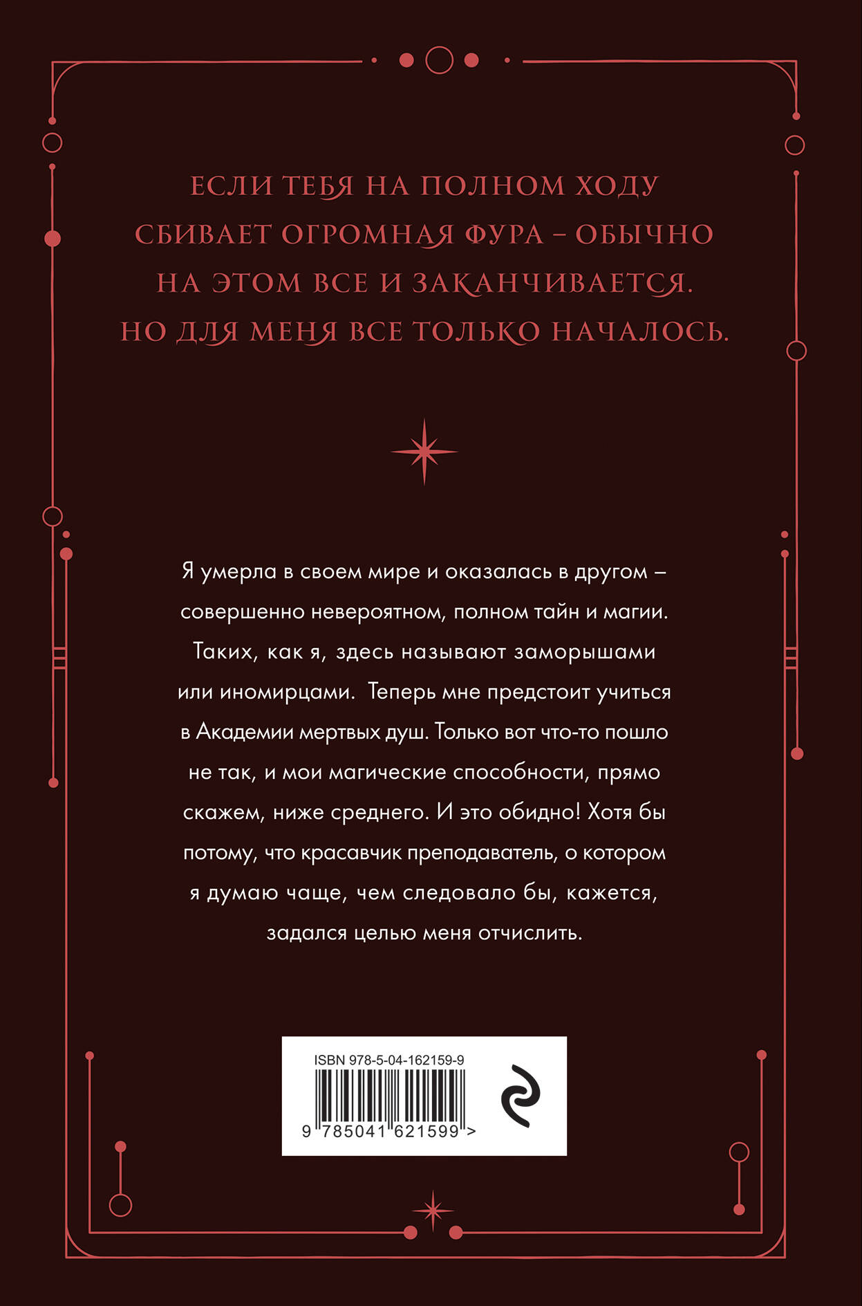 Если тебя на полном ходу сбивает огромная фура - обычно на этом все и заканчивается. Но для меня все только началось. Я умерла в своем мире и оказалась в другом - совершенно невероятном, полном тайн и магии. Таких, как я, здесь называют заморышами или иномирцами. Теперь мне предстоит учиться в Академии мертвых душ. Только вот что-то пошло не так, и мои магические способности, прямо скажем, ниже среднего. И это обидно! Хотя бы потому, что красавчик преподаватель, о котором я думаю чаще, чем следовало бы, кажется, задался целью меня отчислить.| Издательство | Эксмо |