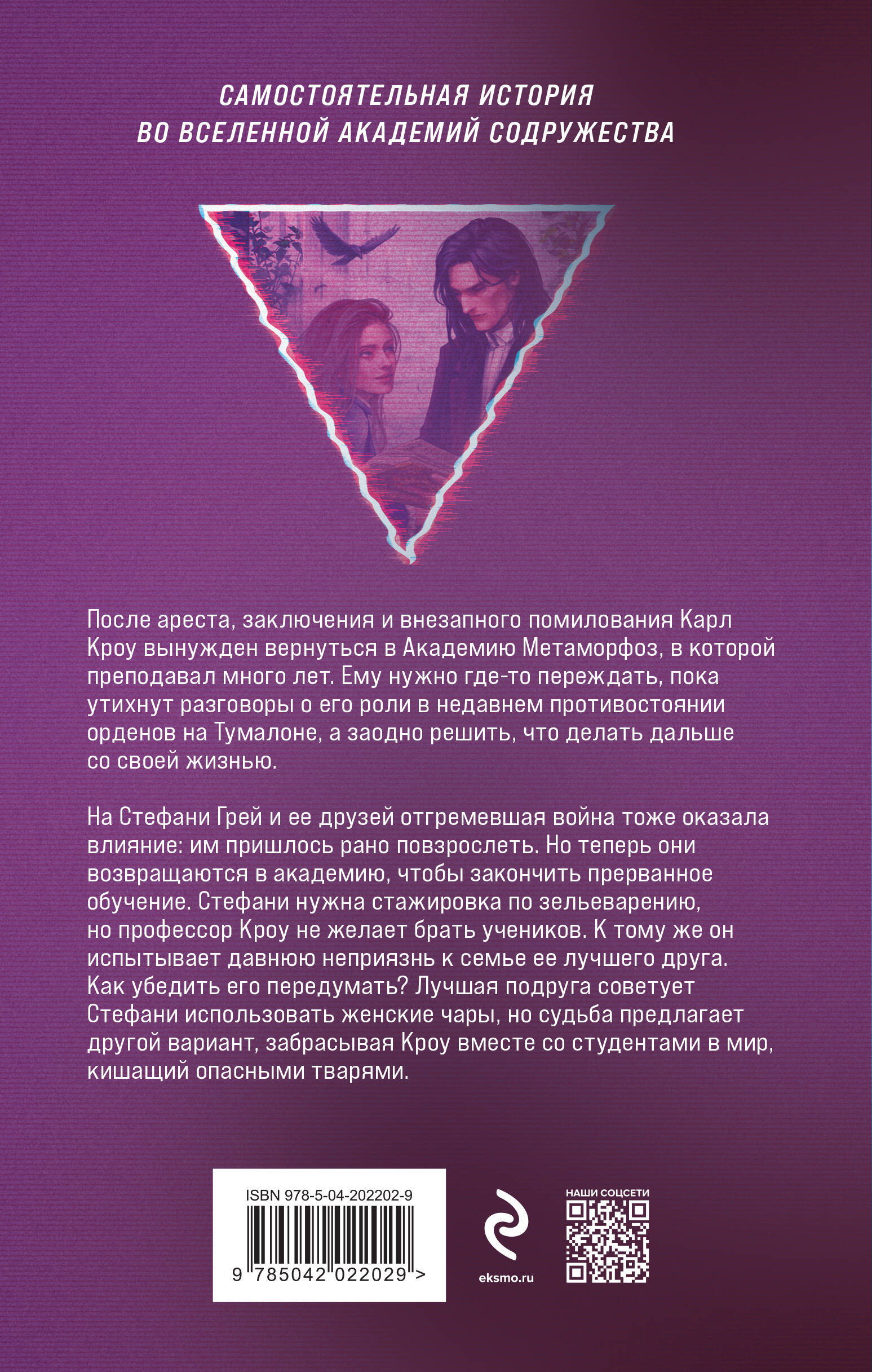 Новая история в мире Академий Содружества от Лены Обуховой! Захватывающее детективное фэнтези, увлекающее с первой страницы. После ареста, заключения и внезапного помилования Карл Кроу вынужден вернуться в Академию Метаморфоз, в которой преподавал много лет. Ему нужно где-то переждать, пока утихнут разговоры о его роли в недавнем противостоянии орденов на Тумалоне, а заодно решить, что делать дальше со своей жизнью. На Стефани Грей и ее друзей отгремевшая война тоже оказала влияние: им пришлось рано повзрослеть. Но теперь они возвращаются в академию, чтобы закончить прерванное обучение. Стефани нужна стажировка по зельеварению, но профессор Кроу не желает брать учеников. К тому же он испытывает давнюю неприязнь к семье ее лучшего друга. Как убедить его передумать? Лучшая подруга советует Стефани использовать женские чары, но судьба предлагает другой вариант, забрасывая Кроу вместе со студентами в мир, кишащий опасными тварями.| Издательство | ООО "Издательство "Эксмо" |