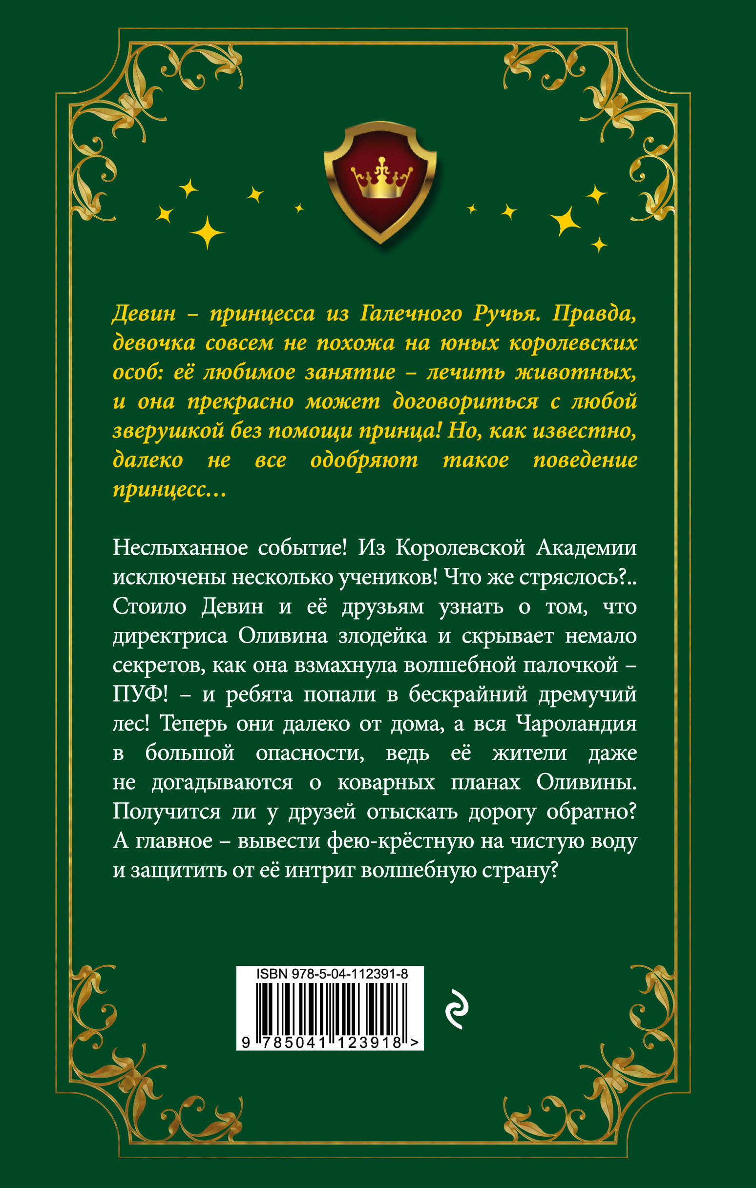 Девин и её друзья из Королевской Академии в большой опасности, ведь они узнали тайну директора Оливины. Оказывается, она вовсе не добрая фея-крёстная, а самая настоящая злодейка! Вот только директор не хочет, чтобы её секрет узнала вся Чароландия: взмах волшебной палочки - и ребята навсегда исчезли из Академии и угодили в бескрайний дремучий лес, откуда практически невозможно выбраться… Получится ли у друзей разоблачить Оливину перед всей волшебной страной и найти дорогу обратно? Восхитительная атмосфера магии и опасных приключений не даст оторваться от книги, а искромётный юмор и отличный слог автора обеспечат хорошее настроение. Любители красивого оформления точно оценят эффектную обложку с золотой фольгой и лакированными элементами и секретные письма, записки и свитки внутри. Серию «Тайны Королевской Академии» Джен Калониты, американского автора бестселлеров New York Times, любят тысячи читателей по всему миру!| Издательство | ООО "Издательство "Эксмо" |