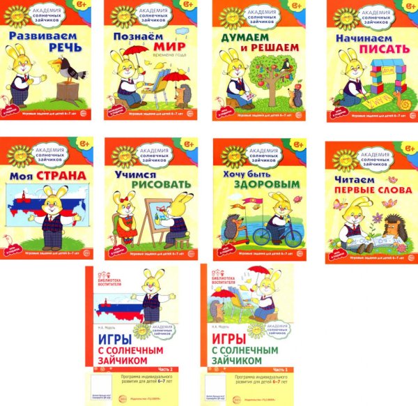 Академия солнечных зайчиков. Система развития ребенка 6-7 лет (комплект: 2 методички и 8 тетрадей)