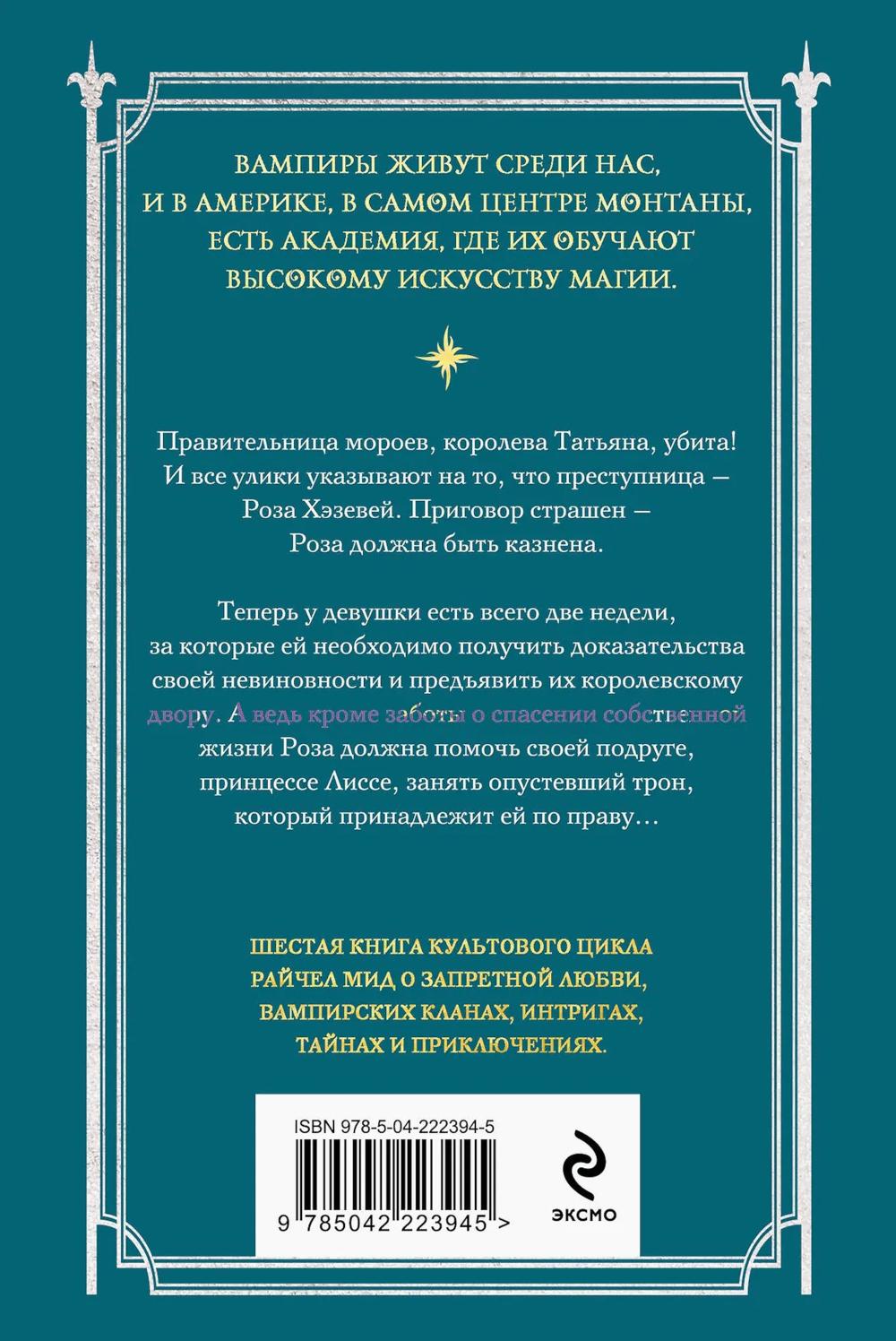 Правительница мороев, королева Татьяна, убита! И все улики указывают на то, что преступница - Роза Хэзевей. Приговор страшен - Роза должна быть казнена. Теперь у девушки есть всего две недели, за которые ей необходимо получить доказательства своей невиновности и предъявить их королевскому двору. А ведь кроме заботы о спасении собственной жизни Роза должна помочь своей подруге, принцессе Лиссе, занять опустевший трон, который принадлежит ей по праву...| Издательство | Эксмо |