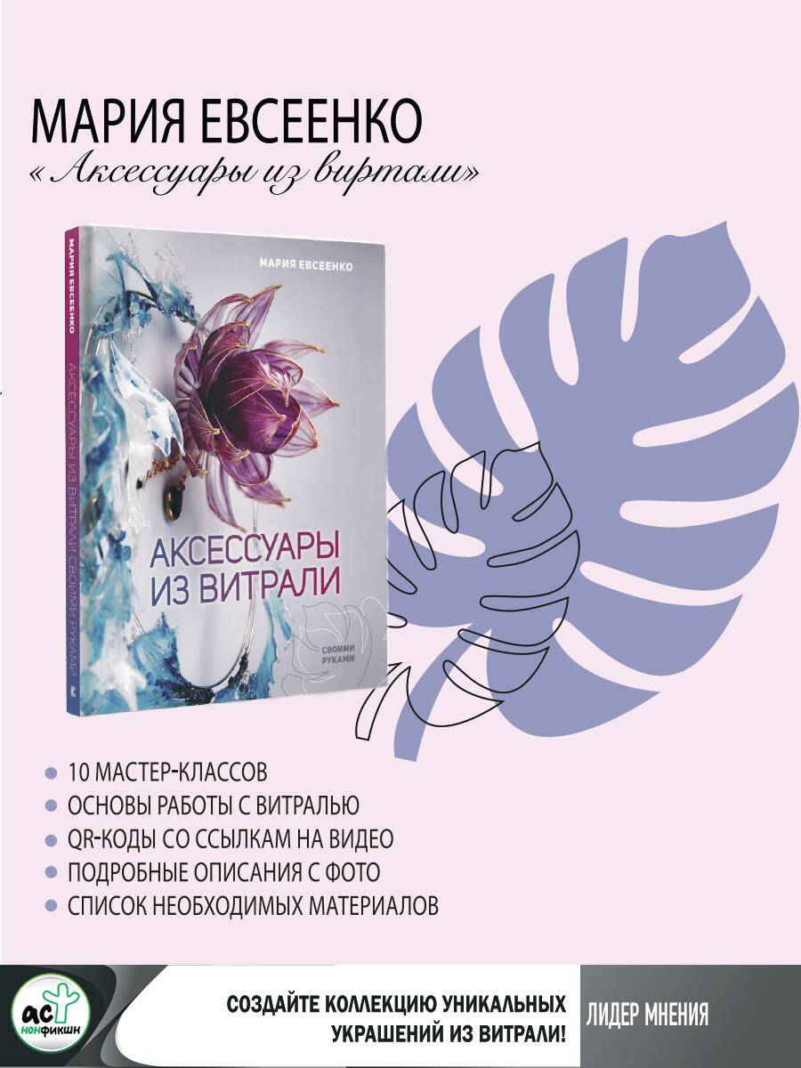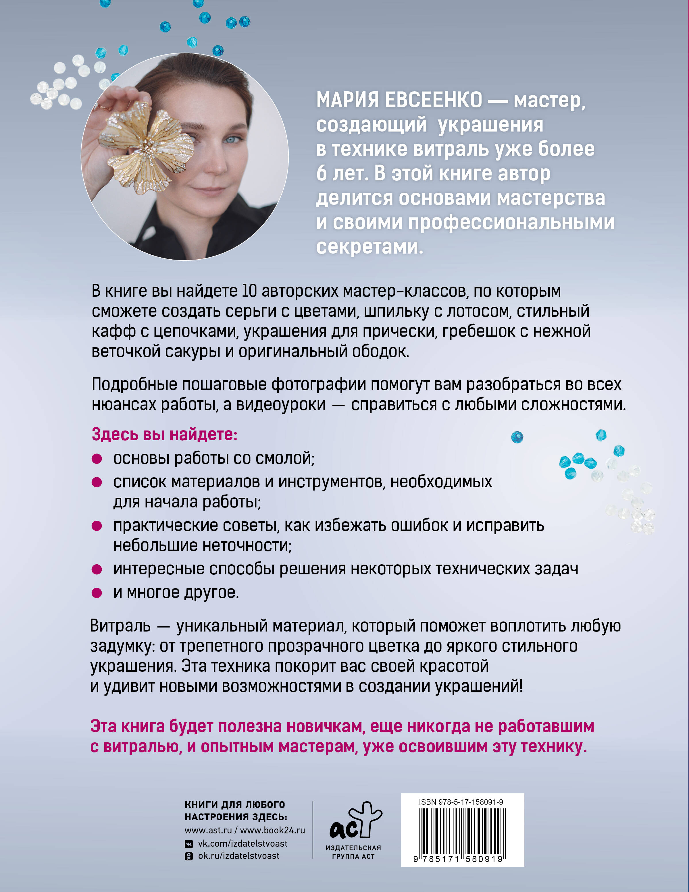 Книга "Аксессуары из витрали своими руками" - подробное руководство по созданию уникальных украшений из смолы. В книге собрано 10 мастер-классов по созданию изысканных украшений. В ней вы найдёте подробное описание основ работы со смолой, советы по выбору необходимых для начала работы материалов и инструментов, а также ценные практические советы о том, как избежать распространенных ошибок. Эта книга станет незаменимым помощником для всех, кто хочет освоить технику витраль, раскрыть свой творческий потенциал и создавать неповторимые украшения.