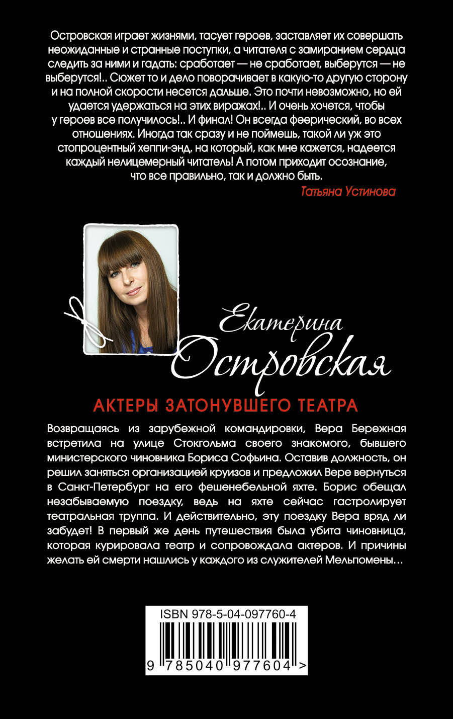 Возвращаясь из зарубежной командировки, Вера Бережная встретила на улице Стокгольма своего знакомого, бывшего министерского чиновника Бориса Софьина. Оставив должность, он решил заняться организацией круизов и предложил Вере вернуться в Санкт-Петербург на его фешенебельной яхте. Борис обещал незабываемую поездку, ведь на яхте сейчас гастролирует театральная труппа. И действительно, эту поездку Вера вряд ли забудет! В первый же день путешествия была убита чиновница, которая курировала театр и сопровождала актеров. И причины желать ей смерти нашлись у каждого из служителей Мельпомены… Татьяна Устинова рекомендует: «Островская играет жизнями, тасует героев, заставляет их совершать неожиданные и странные поступки, а читателя - с замиранием сердца следить за ними и гадать: сработает, не сработает, выберутся, не выберутся!.. Сюжет то и дело поворачивает в какую-то другую сторону и на полной скорости несется дальше. Это почти невозможно, но ей удается удержаться на этих виражах!.. И очень хочется, чтобы у героев все получилось!.. И финал! Он всегда феерический, во всех отношениях».