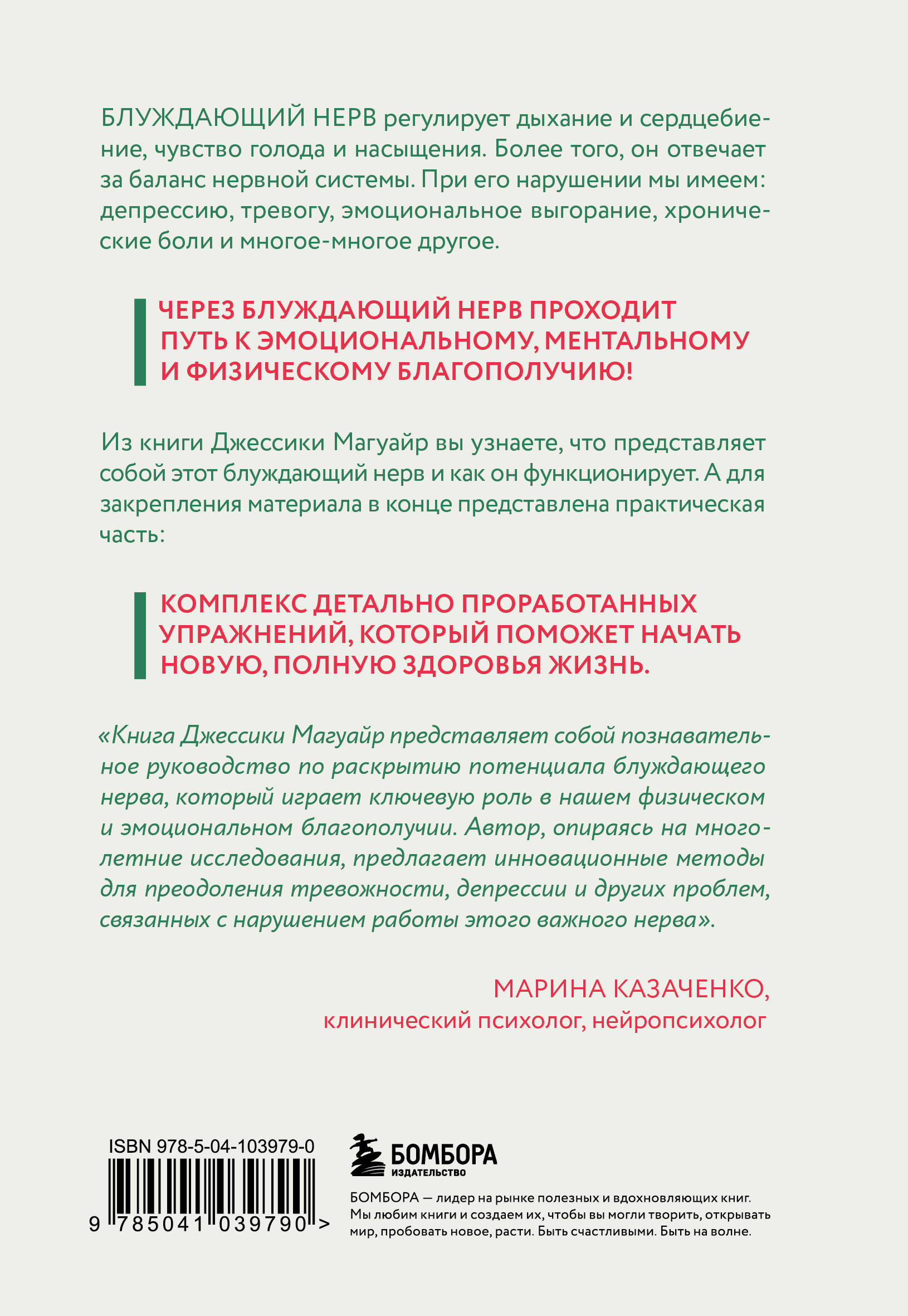 Когда в последний раз вы чувствовали себя по-настоящему счастливым человеком? Каждый день мы сталкиваемся с таким количеством проблем, что и не замечаем, как постепенно начинаем привыкать к жизни под постоянным давлением. А ведь это губит все: наше здоровье, наши отношения, всю нашу жизнь. Если вы устали испытывать постоянное чувство неудовлетворенности и напряжения, Джессика Магуайр, специалист по нейропсихологии с многолетней практикой, способна вам помочь. В этой книге она делится с нами инновационной, основанной исключительно на последних научных данных, программой по раскрытию блуждающего нерва. Магуайр подробно рассказывает о том, как с ее помощью можно устранить симптомы тяжелых душевных травм, преодолеть тревожность, выгорание и даже депрессию. Она объяснит, что такое оптимальное, перегретое и переохлажденное состояние, как проявляется каждое из них и к какому нам стоит стремиться. А чтобы новая жизнь не заставила себя ждать, внутри вы найдете целые комплексы упражнений по борьбе со стрессом и нормализации своей нервной системы. Вы можете навсегда стать счастливым уже сейчас. Чего же вы ждете?| Издательство | ООО "Издательство "Эксмо" |
