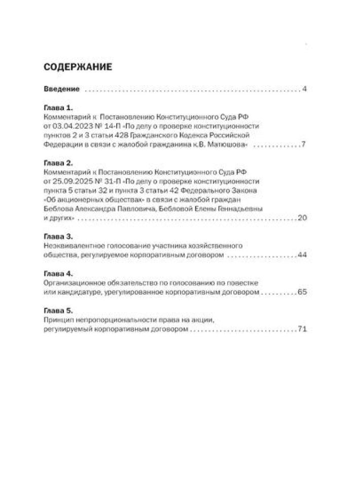 В монографии приводиться системный анализ основных моделей правового регулирования группы корпоративных отношений, связанных с корпоративным договором и российской судебной практики применения рассматриваемых законодательных норм о корпоративном договоре с целью определения основных векторов их совершенствования. Автором дается анализ и комментарий к актам Конституционного Суда РФ по антимонопольному и корпоративному законодательству. Широко представлена судебная практика КС РФ, Верховного Суда РФ, окружных судов. Для экспертов по гражданскому и корпоративному праву, ученых-цивилистов, судей и корпоративных юристов.| Издательство | Инфотропик Медиа |