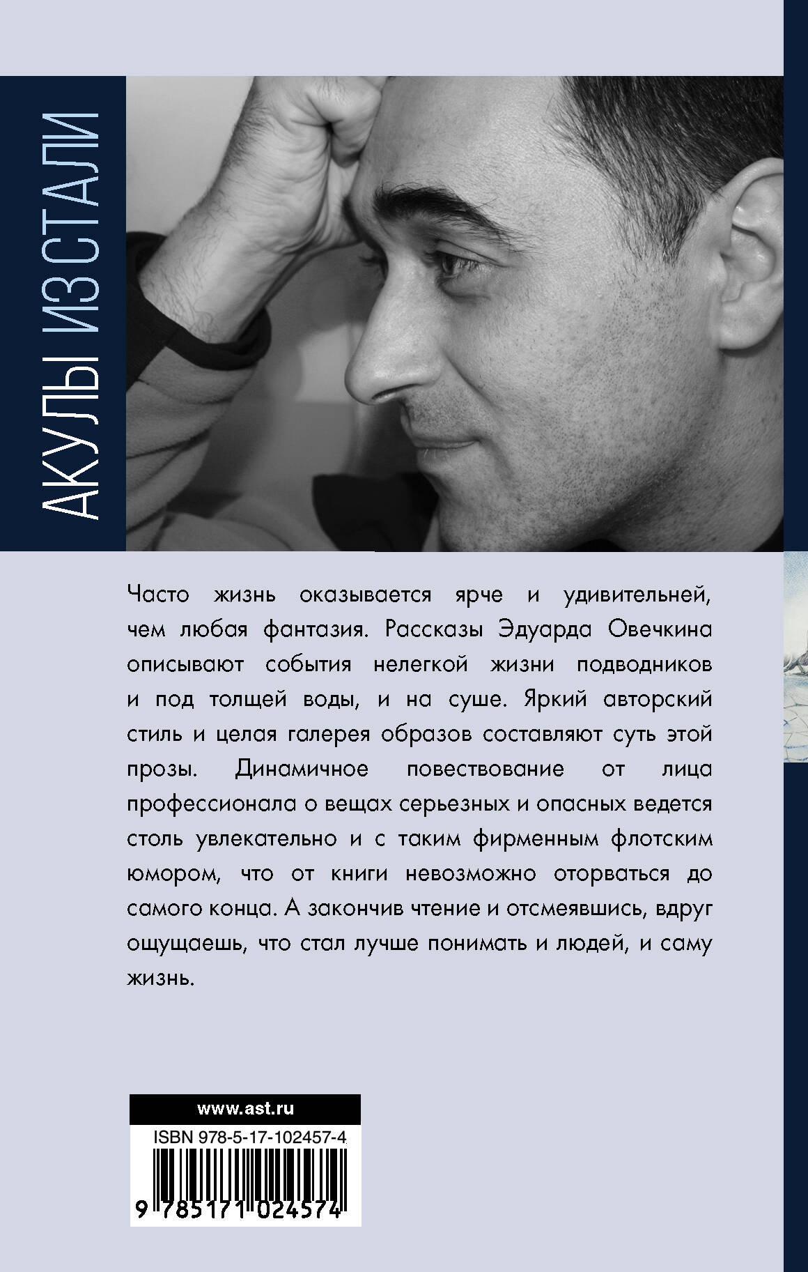 Часто жизнь оказывается ярче и удивительней, чем любая фантазия. Рассказы Эдуарда Овечкина описывают события нелегкой жизни подводников и под толщей воды, и на суше. Яркий авторский стиль и целая галерея образов составляют суть этой прозы. Динамичное повествование от лица профессионала о вещах серьезных и опасных ведется столь увлекательно и с таким фирменным флотским юмором, что от книги невозможно оторваться до самого конца. А закончив чтение и отсмеявшись, вдруг ощущаешь, что стал лучше понимать и людей, и саму жизнь.| Издательство | ИЗДАТЕЛЬСТВО "АСТ" |
