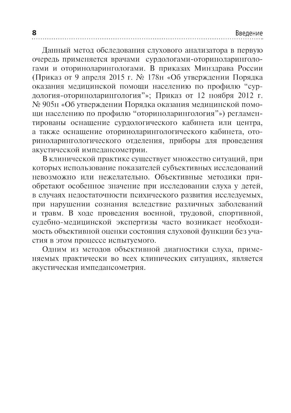В учебном пособии представлены актуальные данные об акустической импедансометрии, а также методиках ее проведения и интерпретации, которые были разработаны коллективом авторов в ФГБУ «Национальный медицинский исследовательский центр оториноларингологии» ФМБА России и на кафедре оториноларингологии ФДПО ФГАОУ ВО «Российский национальный исследовательский медицинский университет им. Н.И. Пирогова» Минздрава России. Акустическая импедансометрия - один из самых распространенных объективных методов диагностики патологических процессов слухового анализатора, который применяется в практике различных специалистов. Он одновременно прост в проведении, но очень сложен при интерпретации результатов. Правильно выполненное исследование позволяет оценить состояние наружного, среднего и внутреннего уха, а также проводящих путей и ядер VII и VIII пар черепно-мозговых нервов на уровне продолговатого мозга и моста. Данное пособие предназначено клиническим ординаторам кафедры оториноларингологии, врачам сурдологам-оториноларингологам, оториноларингологам, педиатрам, терапевтам, врачам общей практики.| Издательство | ГЭОТАР-Медиа |