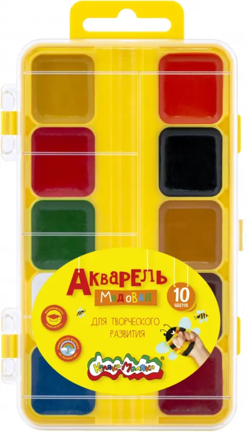Акварель "Каляка-Маляка", квадратный кювет, 10 цветов, без кистей