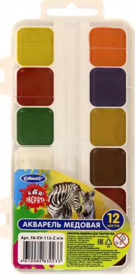 Акварель медовая Зверята, 12 цветов, без кисти
