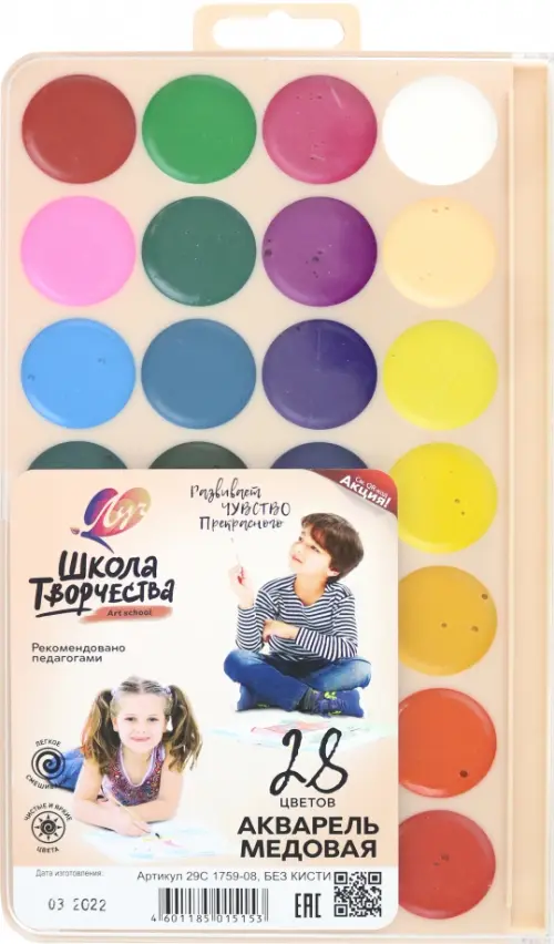 Акварель "Школа творчества", 28 цветов, без кисти