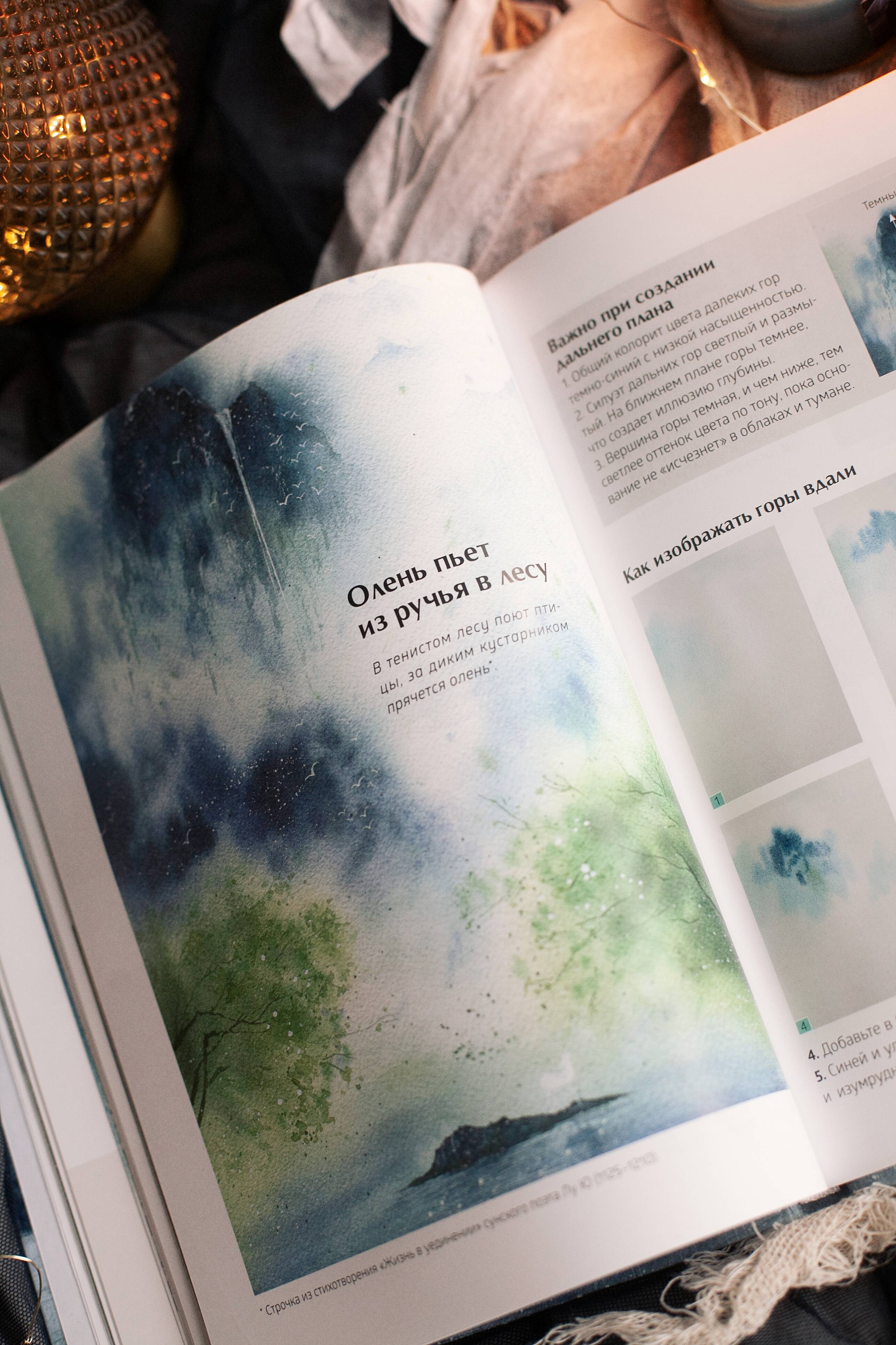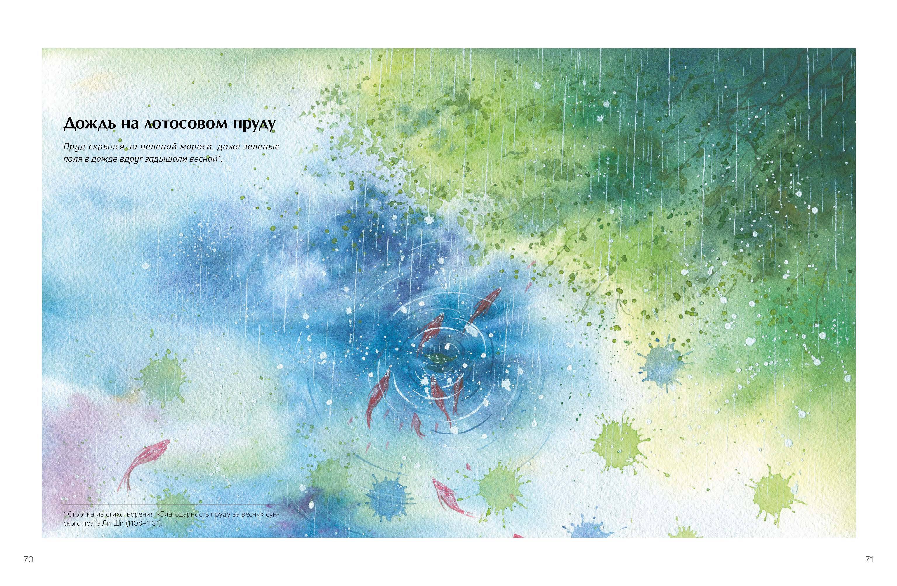 Аннотация: Акварель в каплях дождя. Рисуем глубины облаков, лотосовый пруд и сияние среди снегов