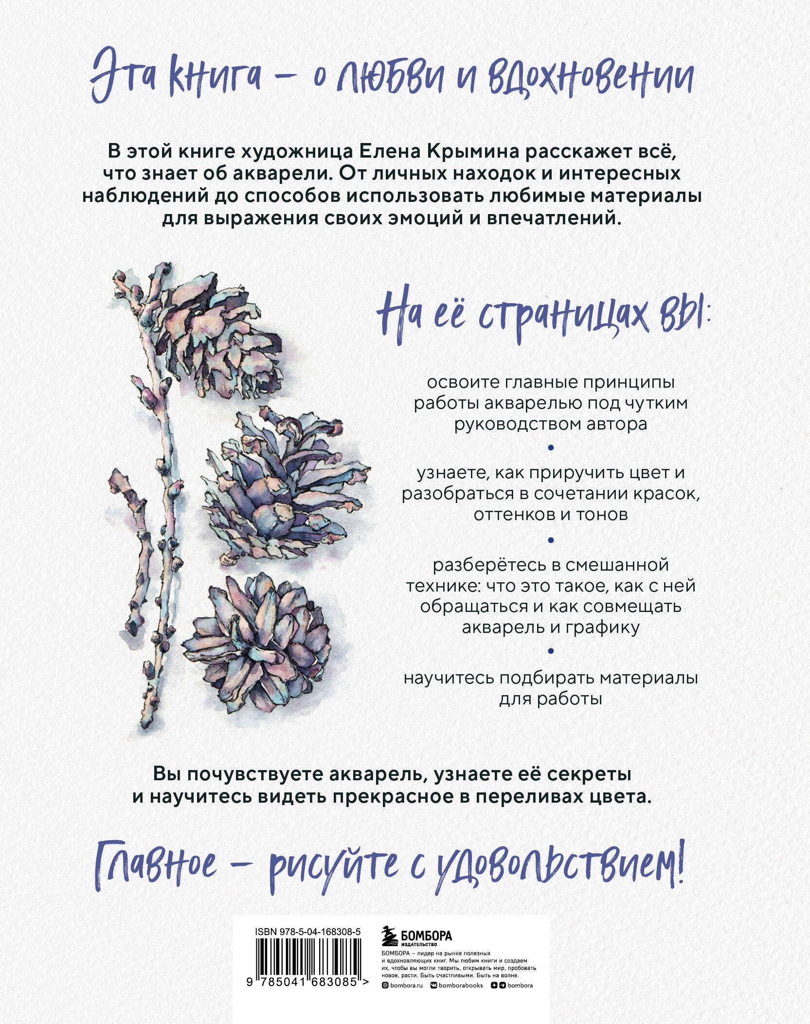 Откройте для себя удивительный мир акварели вместе с авторским руководством от Елены Крыминой! Это вдохновляющее пособие станет вашим путеводителем в мир акварели, раскроет секреты техники и поможет освоить разобрать теорию, которую должен знать каждый художник. Вместе с автором вы подберете необходимые художественные материалы, узнаете про базовые принципы работы с акварелью и поймете, как избежать распространенных ошибок и сделать свои рисунки яркими и запоминающимися. А для закрепления теории автор составила пошаговые мастер-классы, которые помогут сразу применить теорию на практике. Эта книга не только поможет новичкам освоить акварель, но и вдохновит опытных художников на новые творческие достижения.| Издательство | ООО "Издательство "Эксмо" |