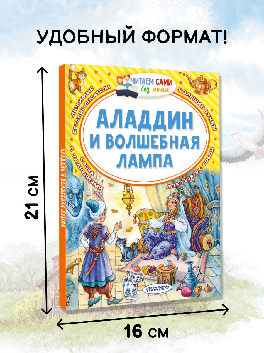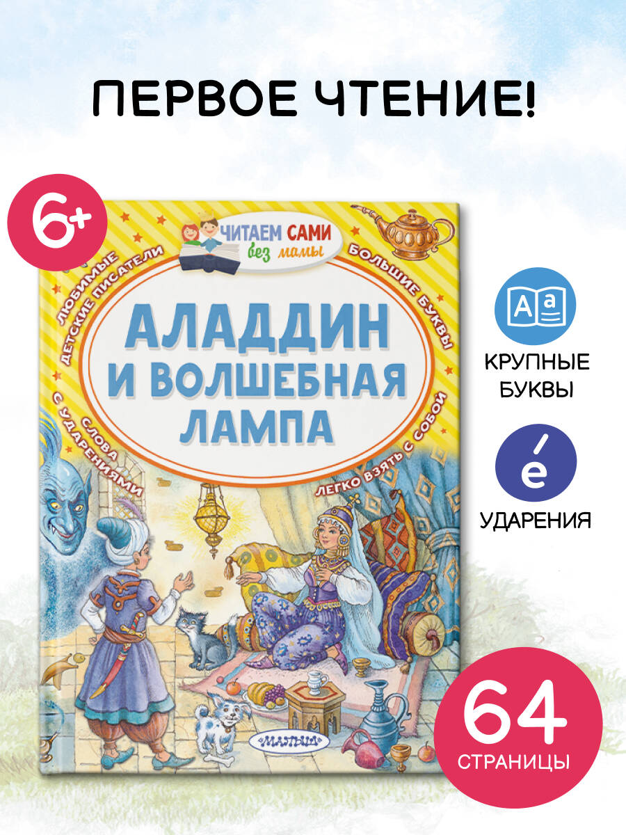 В этой книге представлена известная арабская сказка «Аладдин и волшебная лампа», адаптированная специально для детей востоковедом М.А. Салье. Она станет первой книгой, которую ваш малыш сможет прочитать целиком сам. Увлекательный сюжет, передающий уникальный характер восточных сказок, станет отличным подспорьем для развития фантазии вашего ребёнка, позволит ему расширить свой словарный запас. А крупные буквы и ударения помогут детям самостоятельно ознакомиться с произведением. Для дошкольного возраста.| Издательство | Издательство "АСТ" |