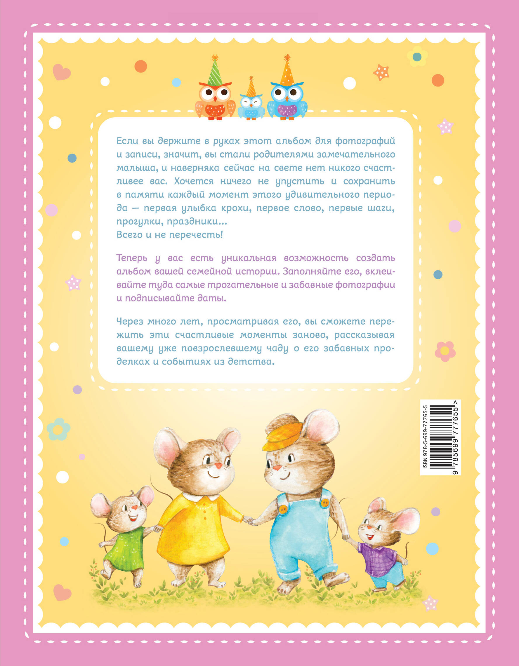 Если вы держите в руках этот альбом для фотографий и записей, значит, вы стали родителями замечательного малыша и, наверняка, сейчас на свете нет никого счастливее вас. Хочется ничего не упустить и сохранить в памяти каждый момент этого удивительного периода - первая улыбка крохи, первое слово, первые шаги, прогулки, праздники… Всего и не перечесть! Теперь у вас есть уникальная возможность создать альбом вашей семейной истории. Заполняйте его, вклеивайте туда самые трогательные и забавные фотографии и подписывайте даты. Через много лет, просматривая его, вы сможете пережить эти счастливые моменты заново, рассказывая вашему уже повзрослевшему чаду и его забавных проделках, и событиях из детства.| Издательство | ООО "Издательство "Эксмо" |