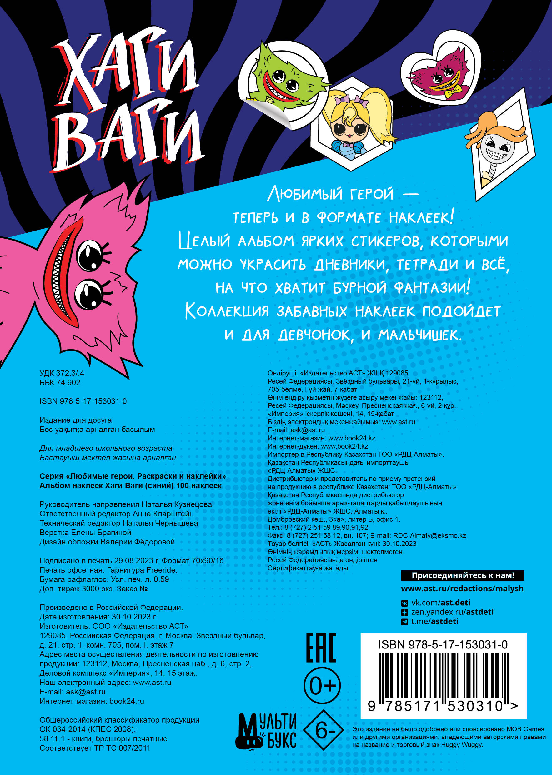 Аннотация: Альбом наклеек Хаги Ваги (синий) 100 наклеек
