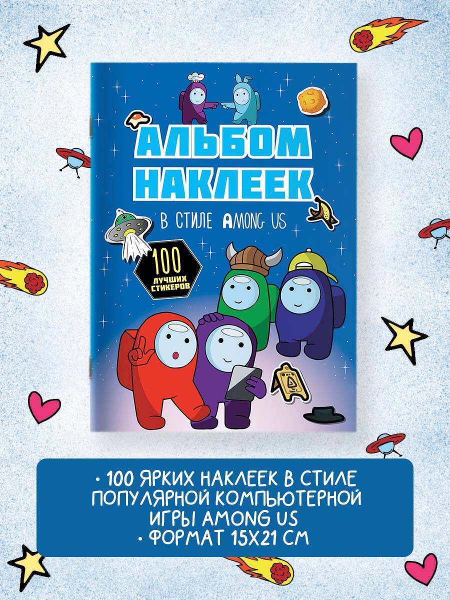Аннотация: Альбом наклеек в стиле Among Us (синий) (100 наклеек)