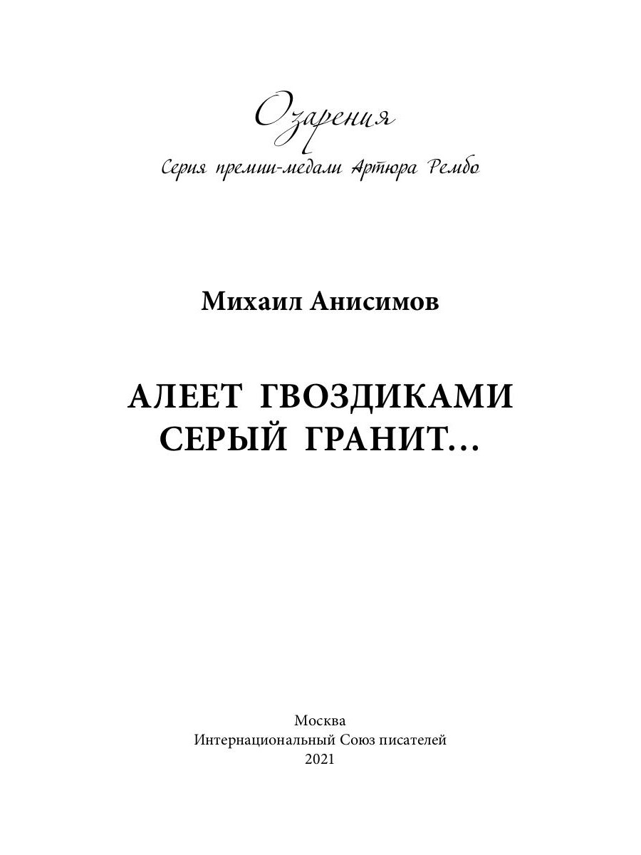 В книгу Михаила Анисимова «Алеет гвоздиками серый гранит…» вошли стихи, очерки и рассказы о трагедии войны, пейзажная и гражданская лирика. Произведения автора насыщены искренностью переживаний за судьбу Родины. Многие стихотворения переложены на музыку. Автор в прошлом кадровый офицер, и книга является во многом автобиографичной. В разделе «Профессия - военный следователь» показана специфика службы офицера военной прокуратуры. Книга рассчитана на широкий круг читателей.| Издательство | Т8 RUGRAM |