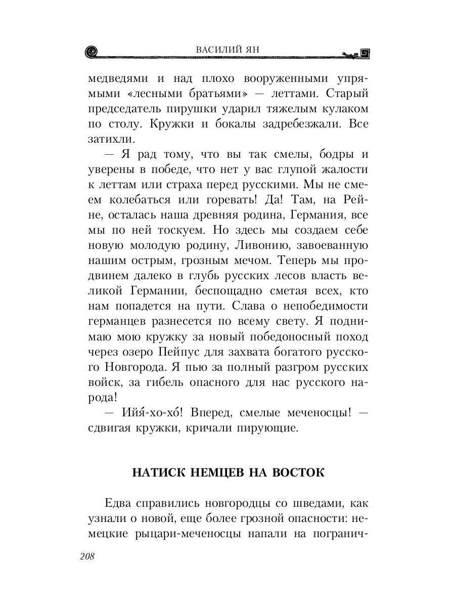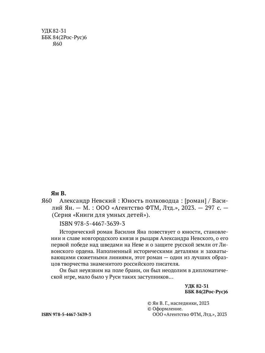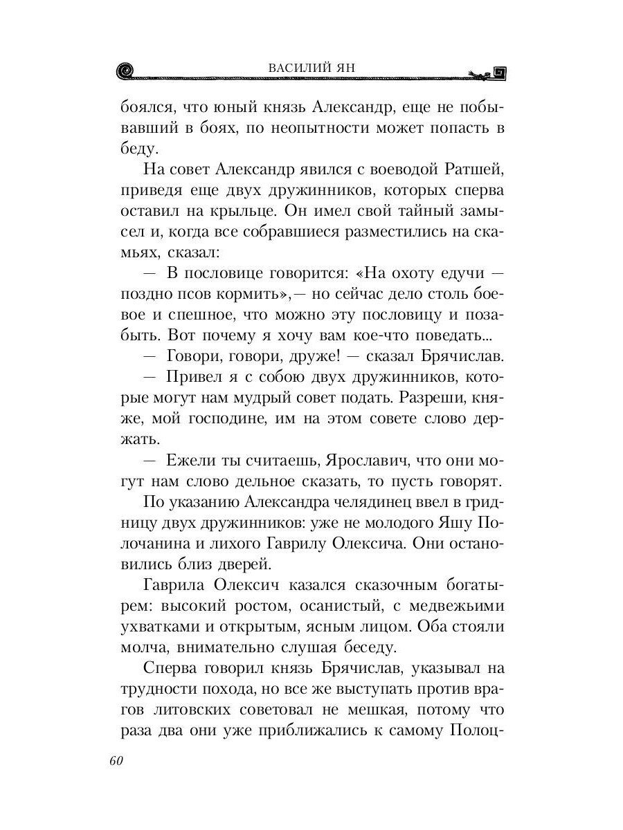 Василий Ян (1875-1954) - советский писатель и публицист. На рубеже XIX-XX веков активно путешествовал по Европе, Ближнему Востоку и Средней Азии. В качестве военного корреспондента участвовал в Русско-японской и Гражданской войнах. После революции жил и работал в СССР. Исторический роман Василия Яна повествует о юности, становлении и славе новгородского князя и рыцаря Александра Невского, о его первой победе над шведами на Неве и о защите русской земли от ливонского ордена. Наполненный историческими деталями и захватывающими сюжетными линиями этот роман - один из лучших образцов творчества знаменитого российского писателя. Он был неуязвим на поле брани, он был неодолим в дипломатической игре, мало было у Руси таких заступников…| Издательство | Т8 RUGRAM |