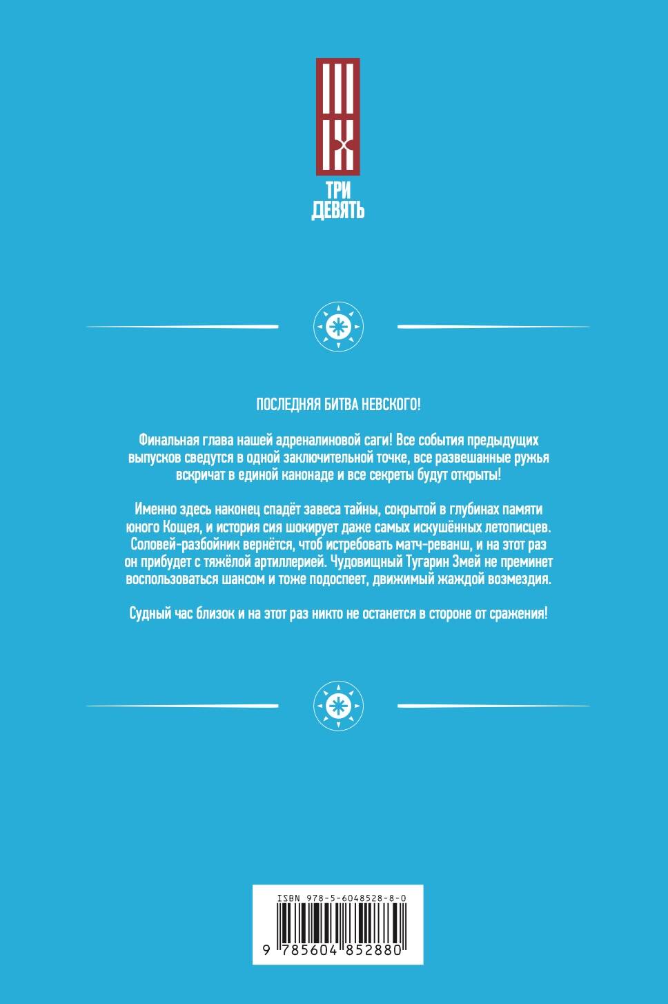ПОСЛЕДНЯЯ БИТВА НЕВСКОГО! Финальная глава нашей адреналиновой саги! Все события предыдущих выпусков сведутся в одной заключительной точке, все развешанные ружья вскричат в единой канонаде и все секреты будут открыты! Именно здесь наконец спадет завеса тайны, сокрытой в глубинах памяти юного Кощея, и история сия шокирует даже самых искушенных летописцев. Соловей-разбойник вернется, чтоб истребовать матч-реванш, и на этот раз он прибудет с тяжелой артиллерией. Чудовищный Тугарин Змей не преминет воспользоваться шансом и тоже подоспеет, движимый жаждой возмездия. Судный час близок и на этот раз никто не останется в стороны от сражения!