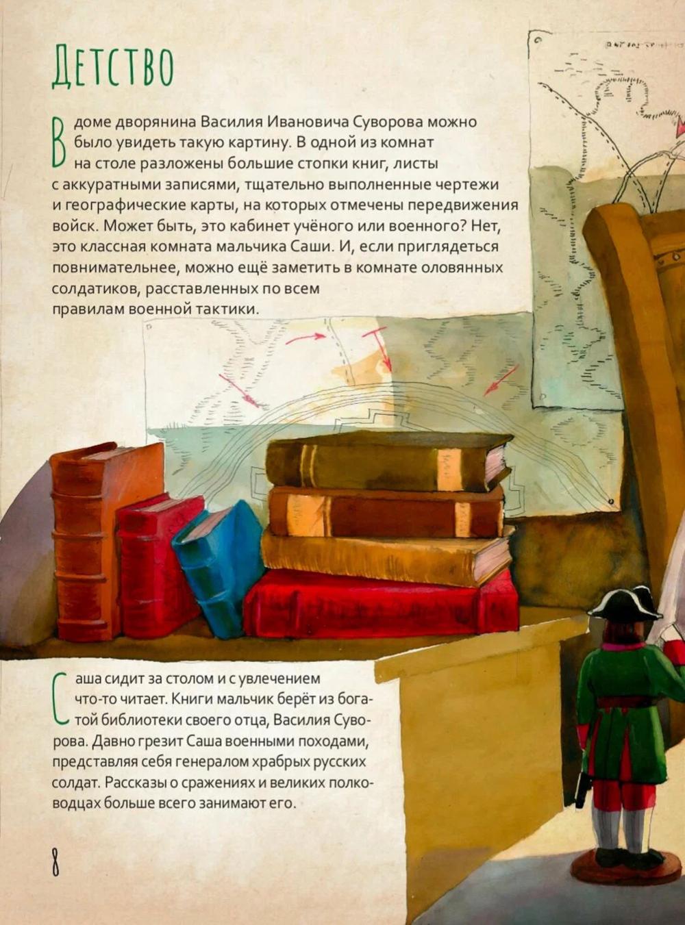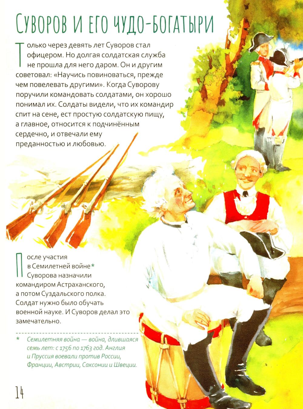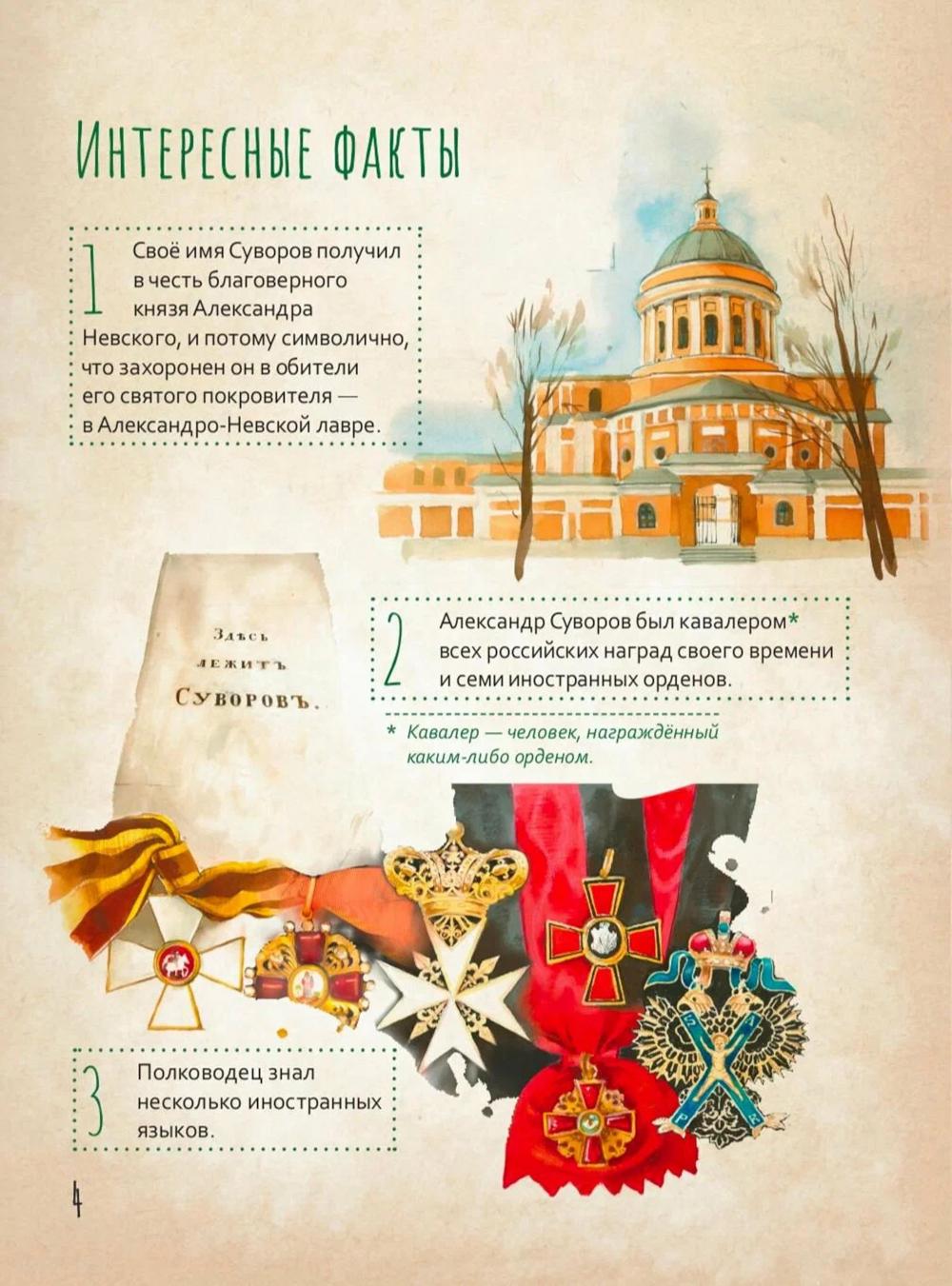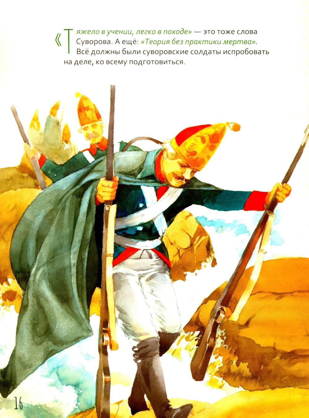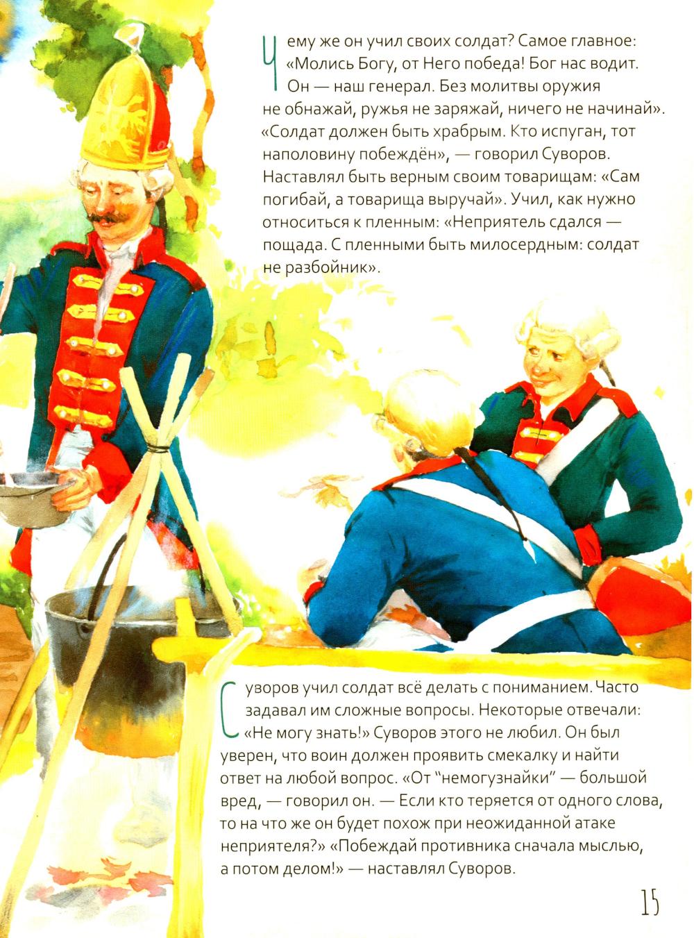 Эта книга познакомит юных читателей с жизнью и подвигами великого полководца, генералиссимуса, Александра Суворова, который верно служил России и не ставил личные интересы выше интересов Отечества. Прославился Александр Суворов на полях сражений, но был известен и добрыми делами: на собственные средства построил несколько храмов, открывал школы и больницы. Ни одно сражение Александр Васильевич не начинал без молитвы, а его знаменитые «крылатые» слова вдохновляют воинов и сегодня. Суворов считал себя не просто военачальником, а подчиненным Богу: «Бог нас водит, Он нам генерал!» - часто говорил полководец. За искреннюю веру и праведную жизнь Суворова глубоко любили в народе. Он мечтал уйти в монастырь, но Бог распорядился иначе, Александр Васильевич умер в походе, на боевом посту при исполнении государственного долга. Из книги читатели узнают, почему Суворов стал первым человеком в России, памятник которому установили еще при жизни.| Издательство | Вольный Странник |