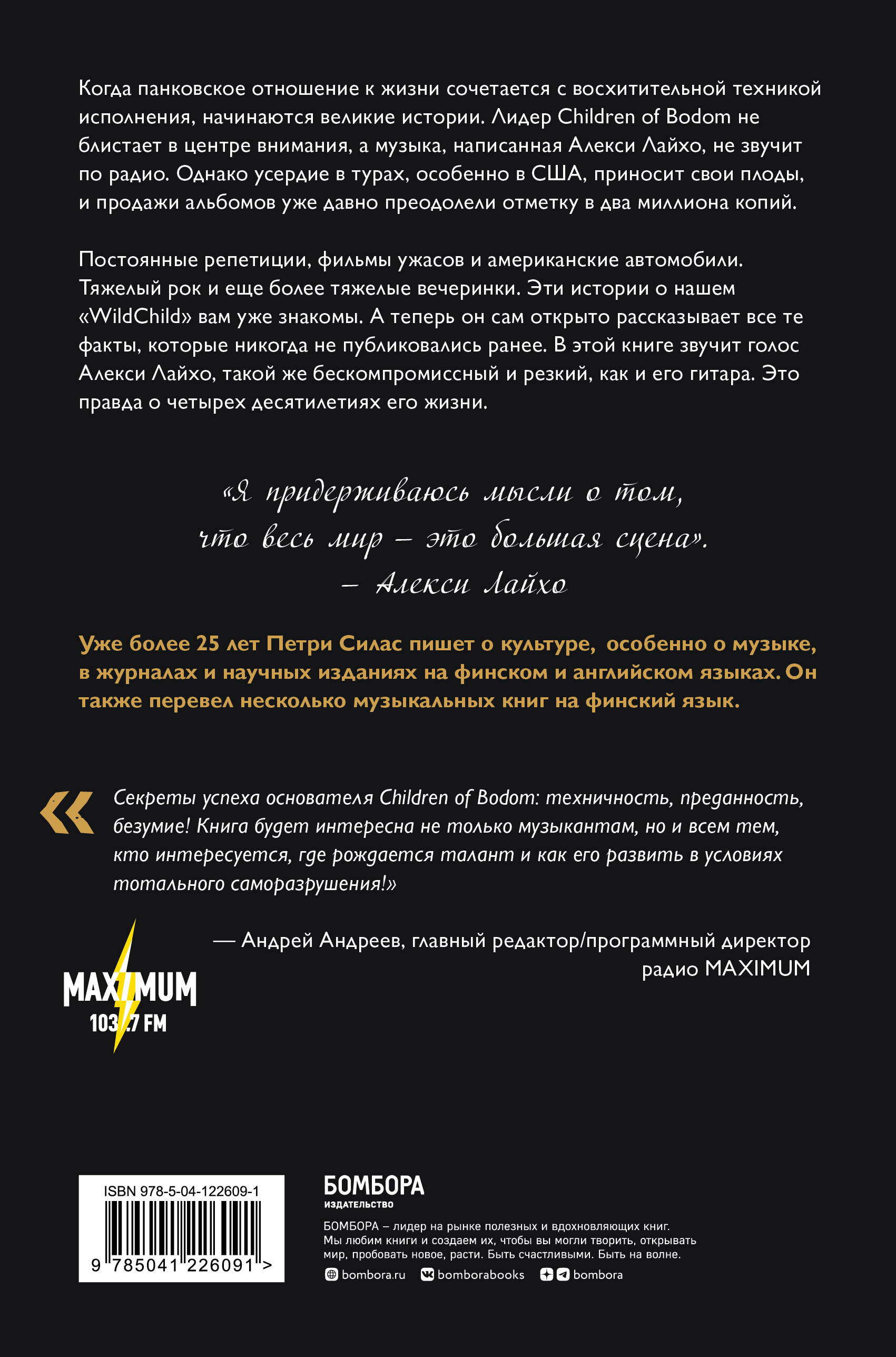История лидера финской метал-группы Children of Bodom Алекси Лайхо - впервые на русском языке! Они не звучат в постоянной ротации на радио и не блистают на первых заголовках журналов, но каждый поклонник металла знает их имя. Брутальная, мелодичная и техничная манера игры Алекси Лайхо принесла ему звание одного из самых быстрых и виртуозных гитаристов планеты, а продажи альбомов группы превысили два миллиона копий. Жизнь Алекси внезапно оборвалась в декабре 2020 года, принеся скорбь его преданным фанатам по всему миру. Автор этой книги Петри Силас рассказывает историю от первого лица. Голос Алекси Лайхо, такой же бескомпромиссный и резкий, как и его гитара, звучит в каждой главе, рассказывая нам правдивую историю о том, как мальчик из Манккаа стал рок-иконой и как, пройдя все испытания, выпавшие на жизнь музыканта, изматывающие репетиции, провалы, успех, безумные вечеринки, тяжелую травму, Алекси остался человеком, преданно любящим свое дело и мечтавшим о спокойной и счастливой жизни в кругу семью на берегу Австралии. «Он был музыкантом, практически одержимым развитием своих навыков, и харизматичным вожаком стаи, гордящимся своими группами. Я всегда буду помнить его как страстно уверенного в своем деле, сильного духом парня, личность которого была также расцвечена застенчивостью, скрытой за резкой иронией и за умением строго оценивать себя со стороны». - Петри Силас, автор книги «Секреты успеха основателя Children of Bodom: техничность, преданность, безумие!» - Андрей Андреев, главный редактор/ программный директор радио MAXIMUM16:40 В России книга выходит при помощи и информационной поддержке поклонников Children of Bodom, сообщества Wind From Lake Bodom и сайта metbash.ru.| Издательство | ООО "Издательство "Эксмо" |