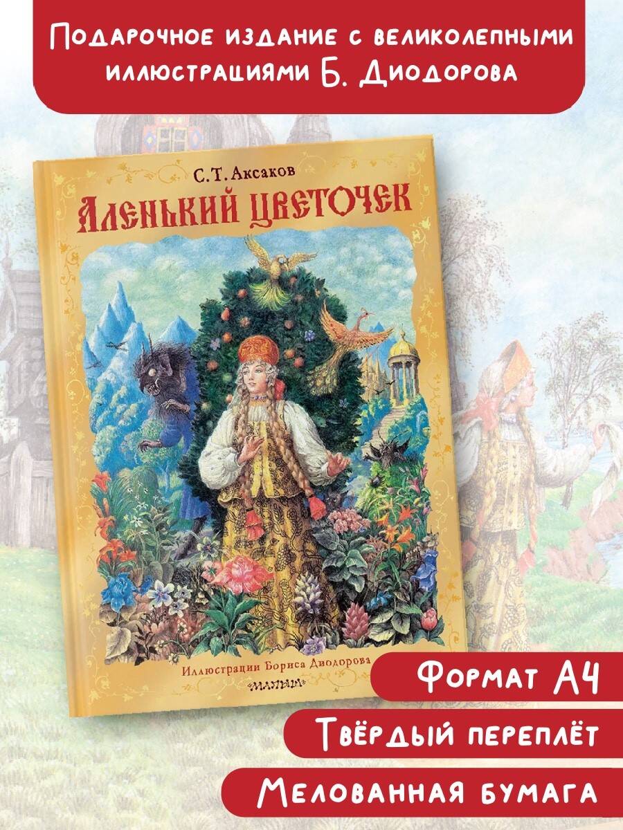 «Аленький цветочек не хитро найти, да как же узнать мне, что краше его нет на белом свете?»тСказка С. Т. Аксакова «Аленький цветочек» о силе редкой и всепобеждающей любви и сегодня одно из ключевых произведений в русской литературе. Иллюстрации к трогательному сюжету нарисовал Борис Диодоров - народный художник РФ.| Издательство | Издательство "АСТ" |