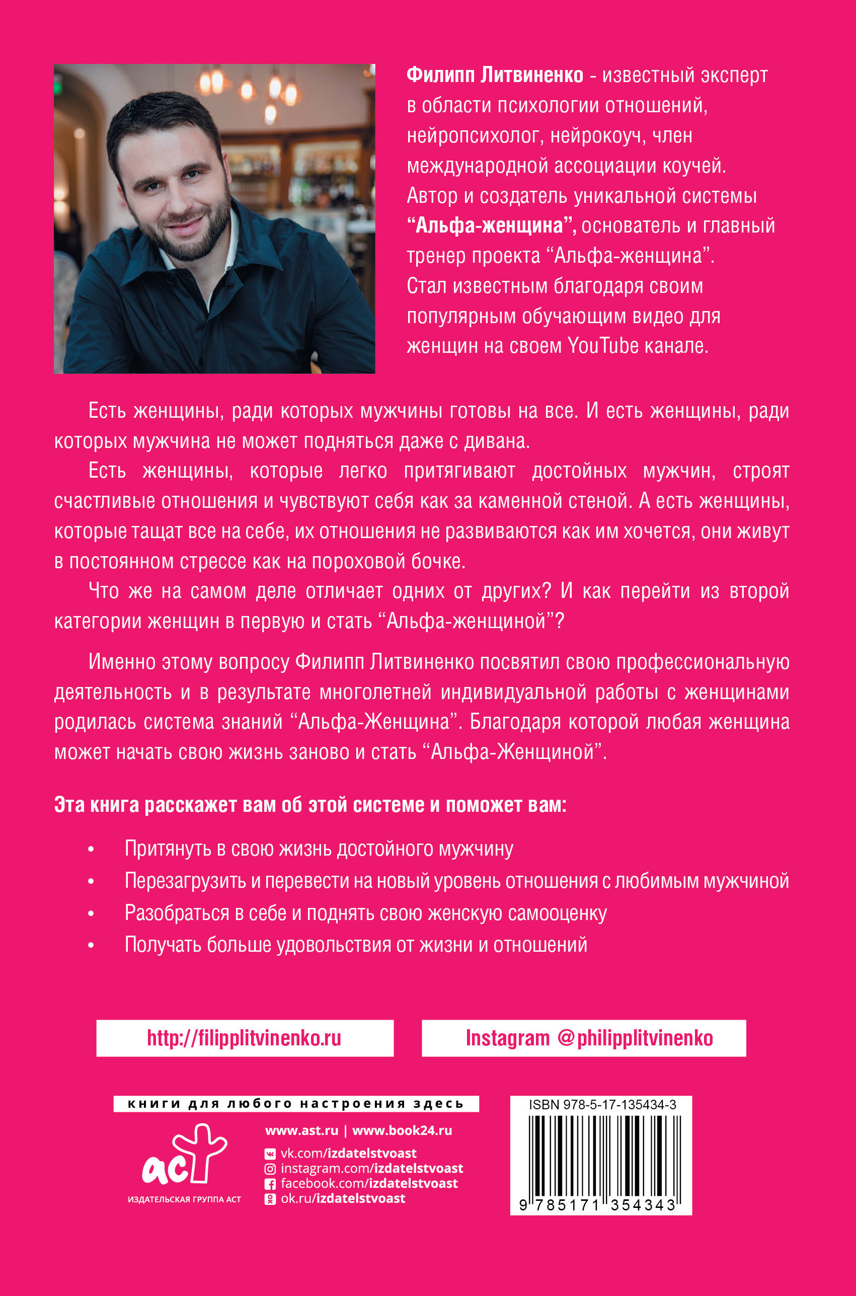 Эта книга расскажет о системе "Альфа-Женщина" и поможет вам: - Притянуть в свою жизнь достойного мужчину - Перезагрузить и перевести новый уровень отношения с любимым мужчиной - Разобраться в себе и поднять свою женскую самооценку - Получать больше удовольствия от жизни и отношений| Издательство | Издательство "АСТ" |