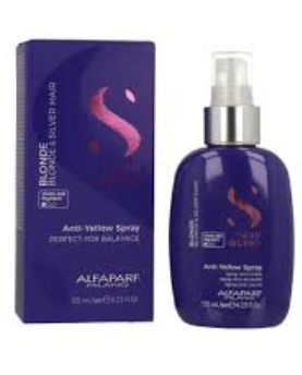 Alfaparf Milano Semi Di Lino Blonde Anti-Yellow - это несмываемый спрей для светлых, осветлённых и седых волос, предназначенный для нейтрализации нежелательных жёлтых оттенков. Формула с фиолетовыми пигментами помогает сохранить холодный тон блонда, придаёт волосам сияние и ухоженный вид. Спрей облегчает расчёсывание, защищает волосы и делает их более мягкими и послушными без утяжеления.