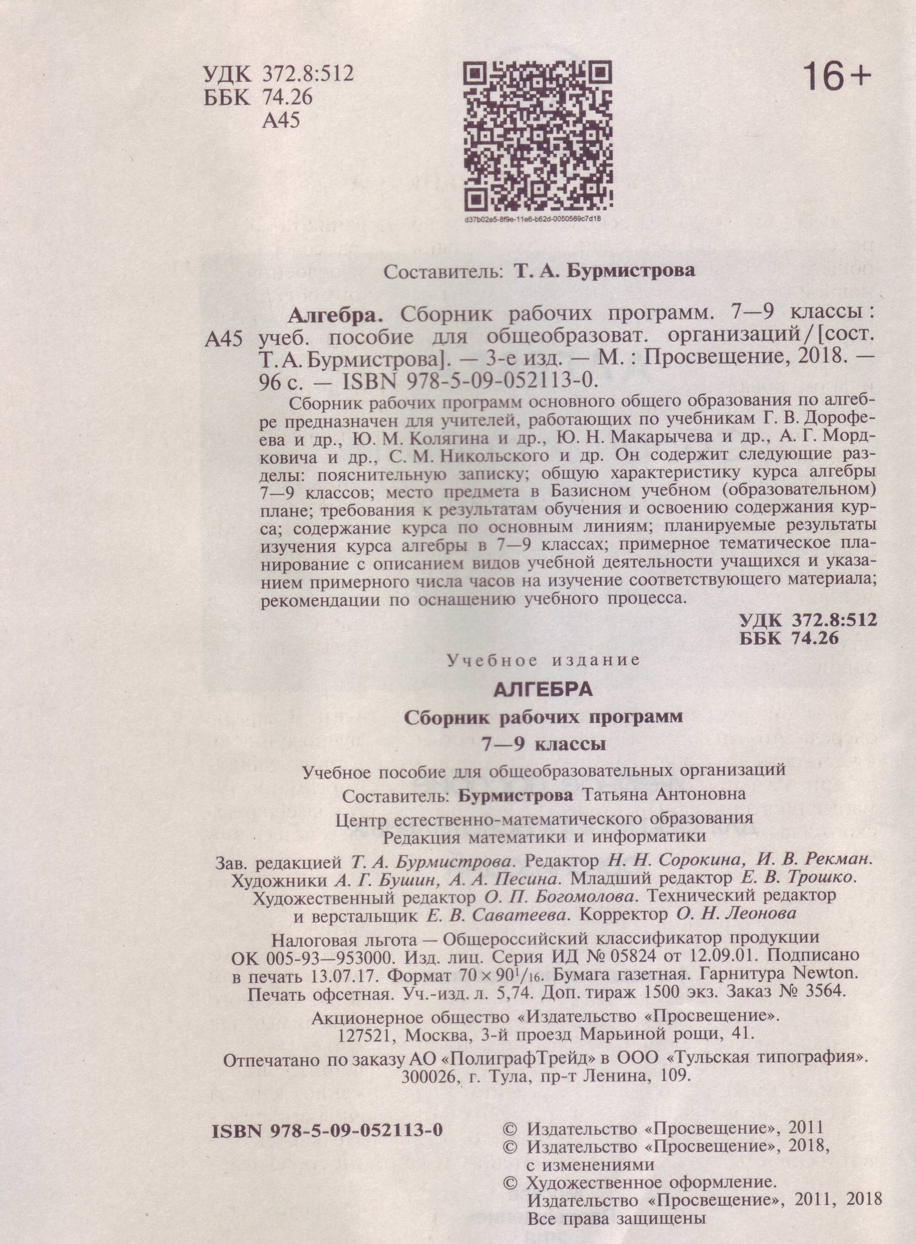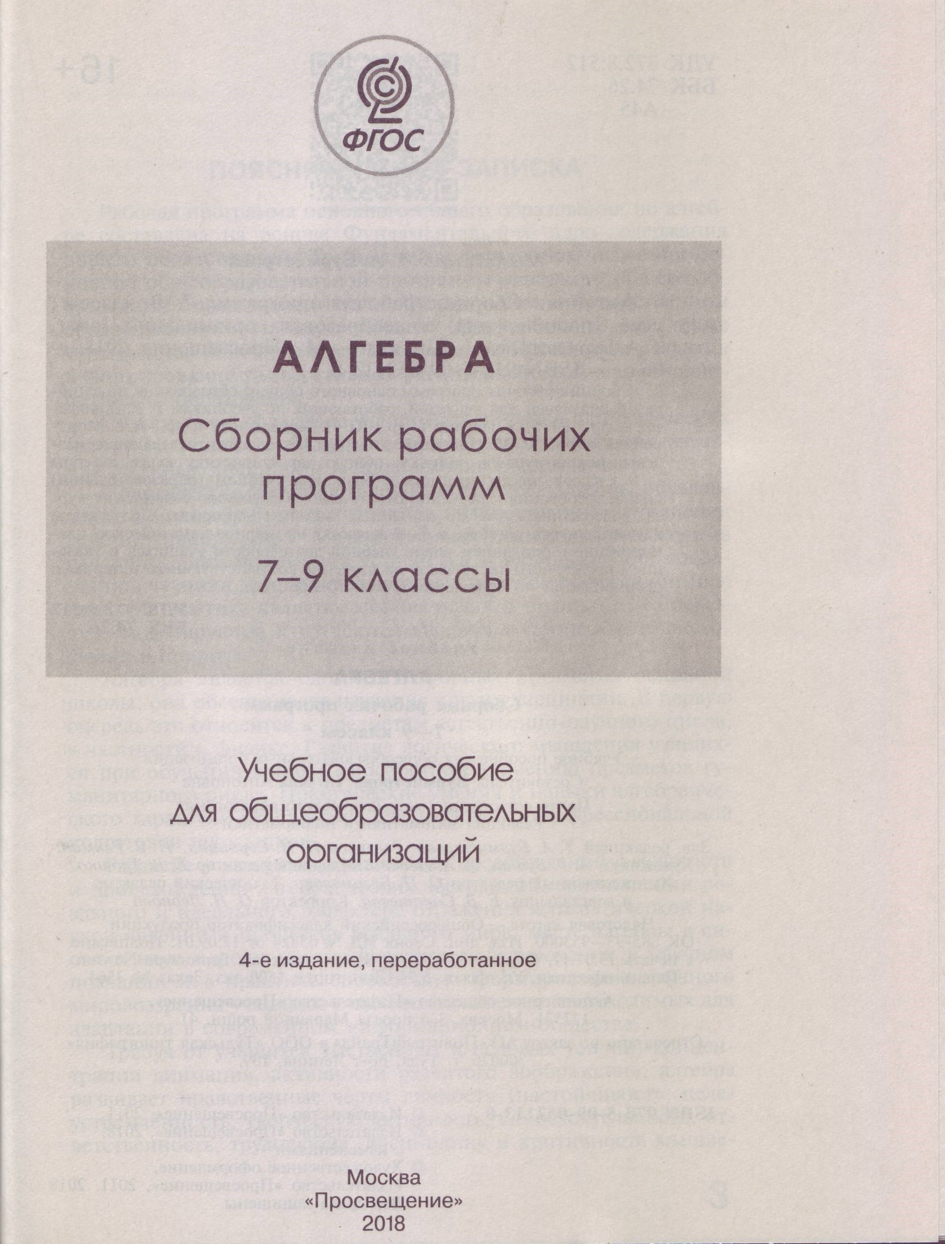 Аннотация: Алгебра. 7-9 классы. Сборник рабочих программ. ФГОС