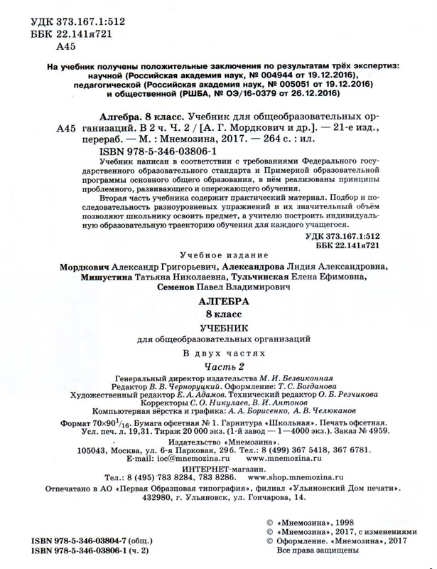 Аннотация: Алгебра. 8 класс. Учебник + задачник. ФГОС (количество томов: 2)