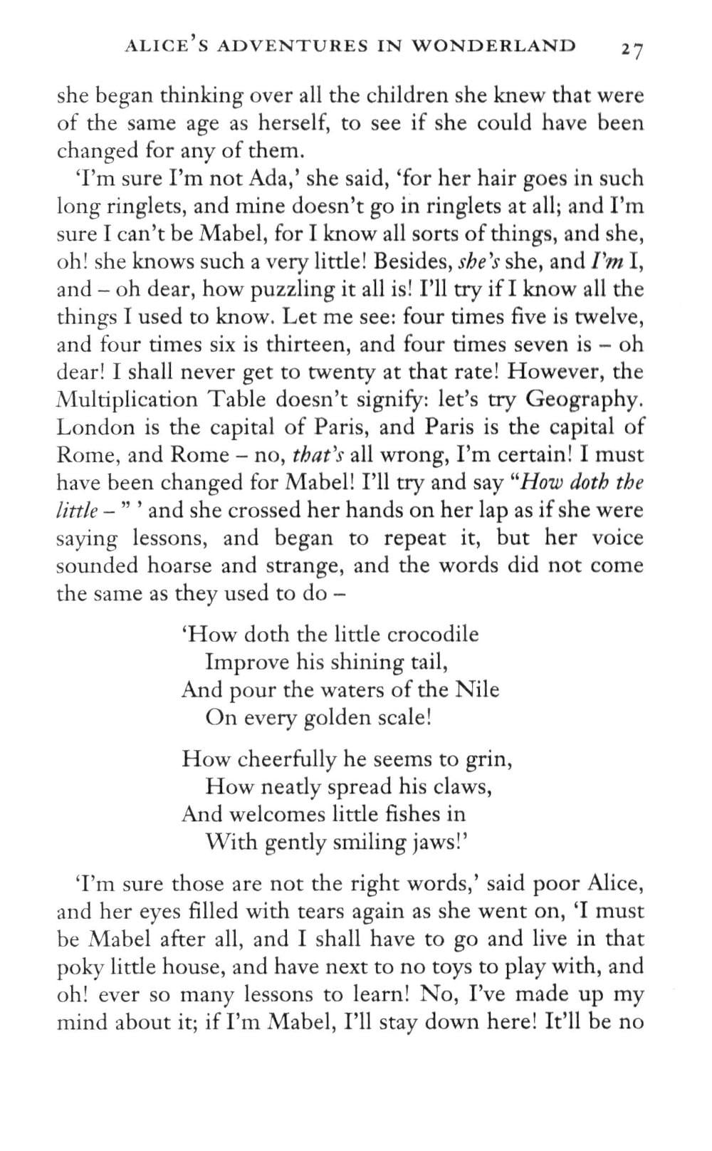 Alice's Adventures in Wonderland and its sequel Through the Looking Glass. It is illustrated throughout by Sir John Tenniel, whose drawings for the books add so much to the enjoyment of them. Tweedledum and Tweedledee, the Mad Hatter, the Cheshire Cat, the Red Queen and the White Rabbit all make their appearances, and are now familiar figures in writing, conversation and idiom. So too, are Carroll's delightful verses such as The Walrus and the Carpenter and the inspired jargon of that masterly Wordsworthian parody, The Jabberwocky.| Издательство | Wordsworth |