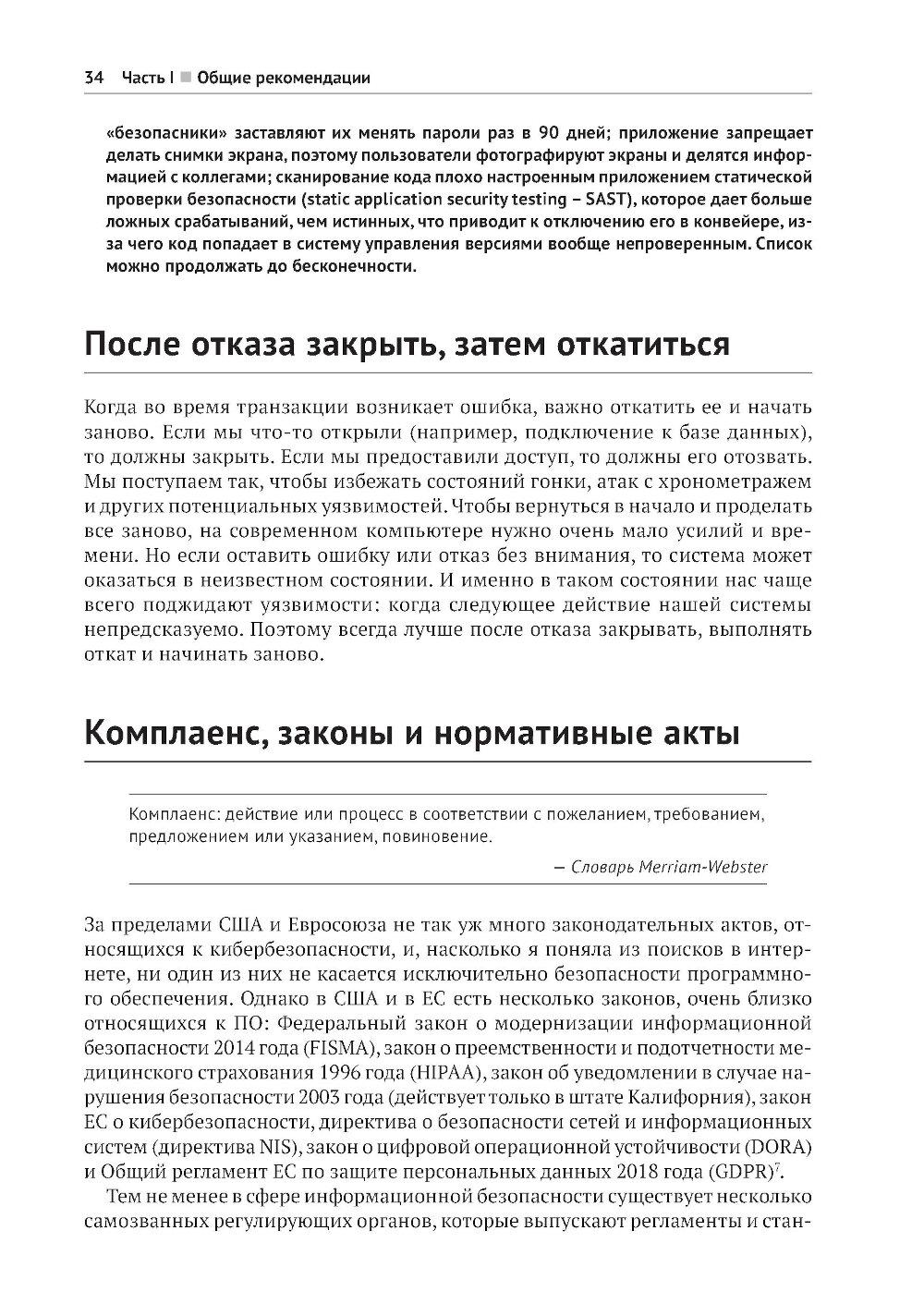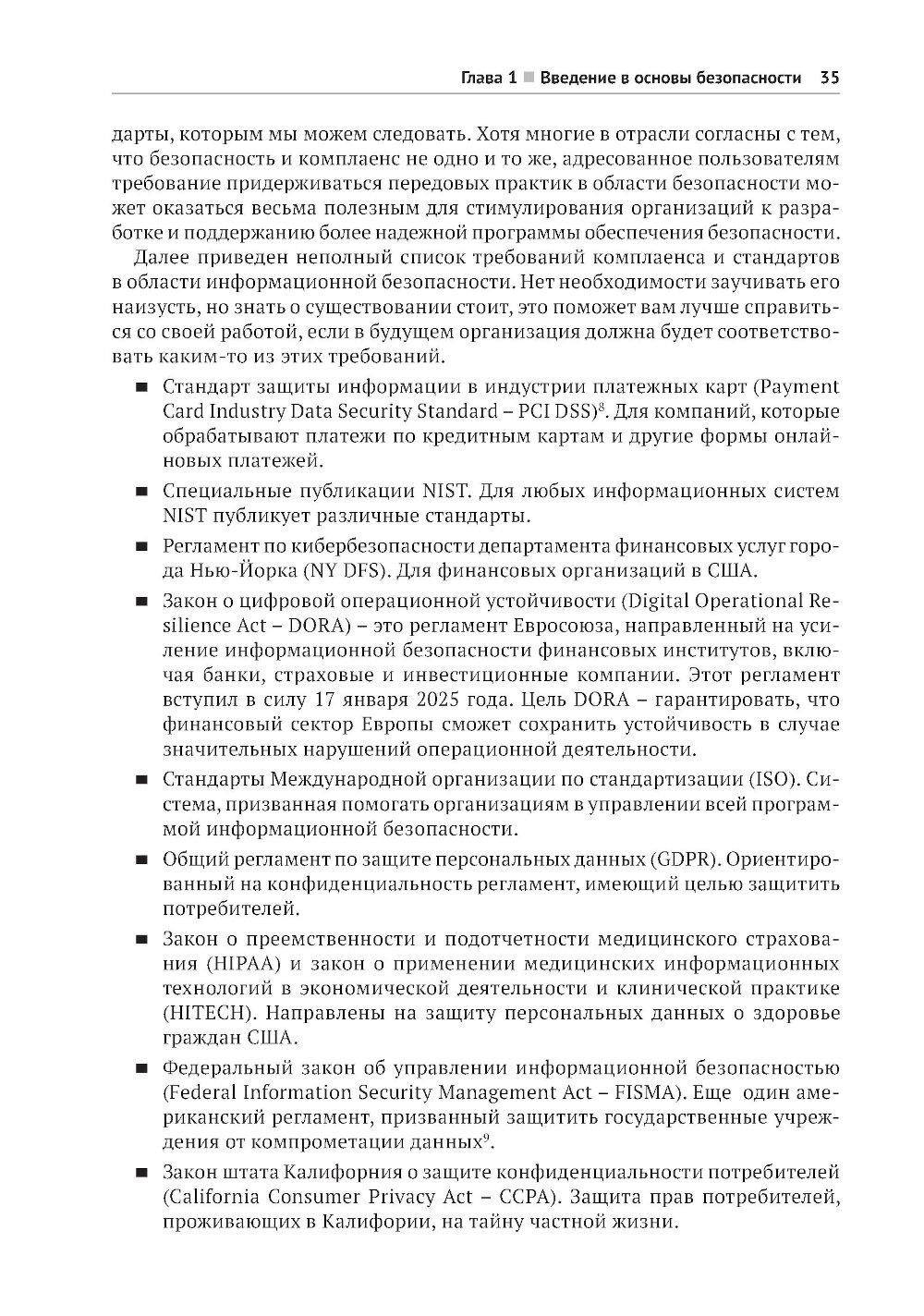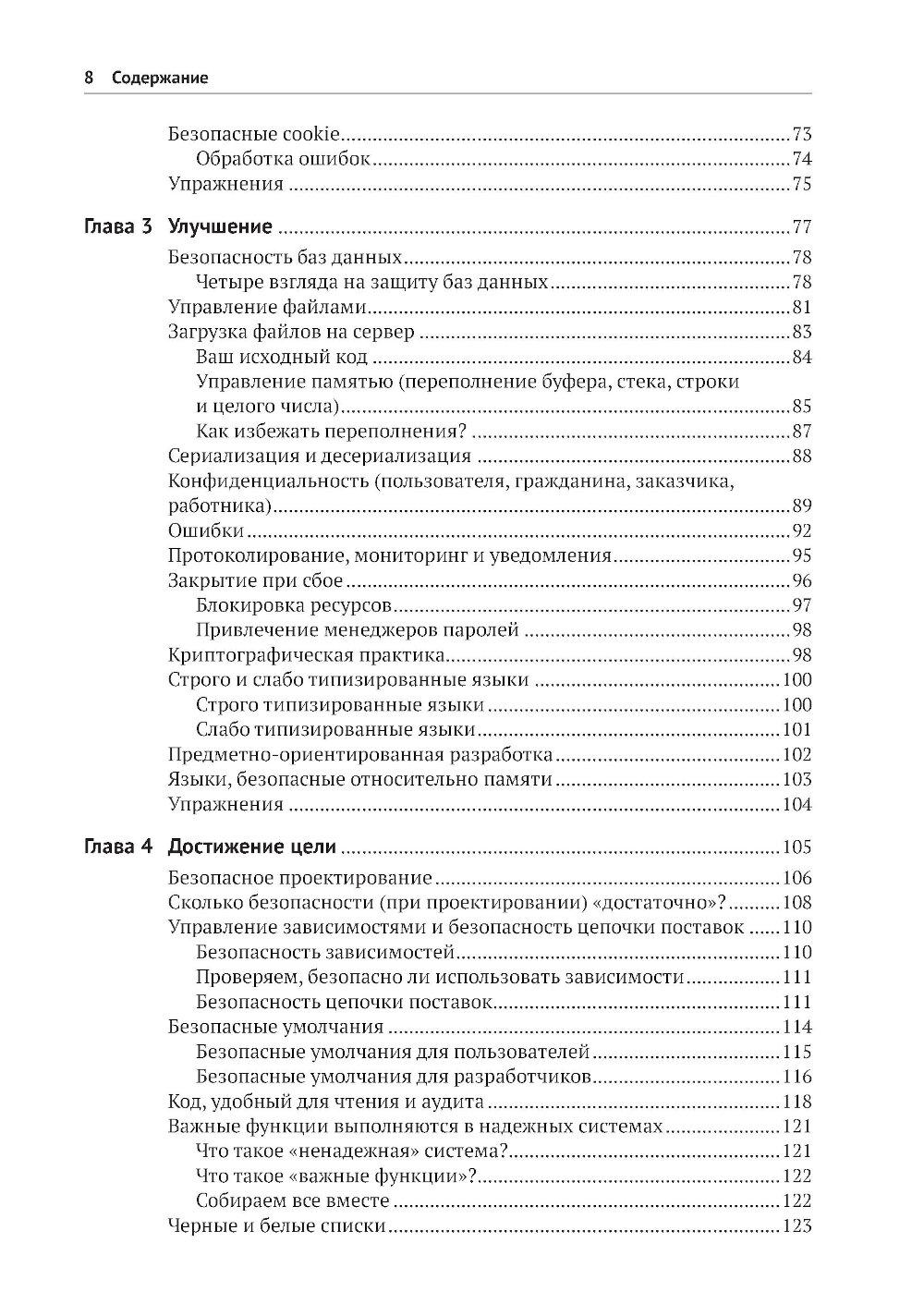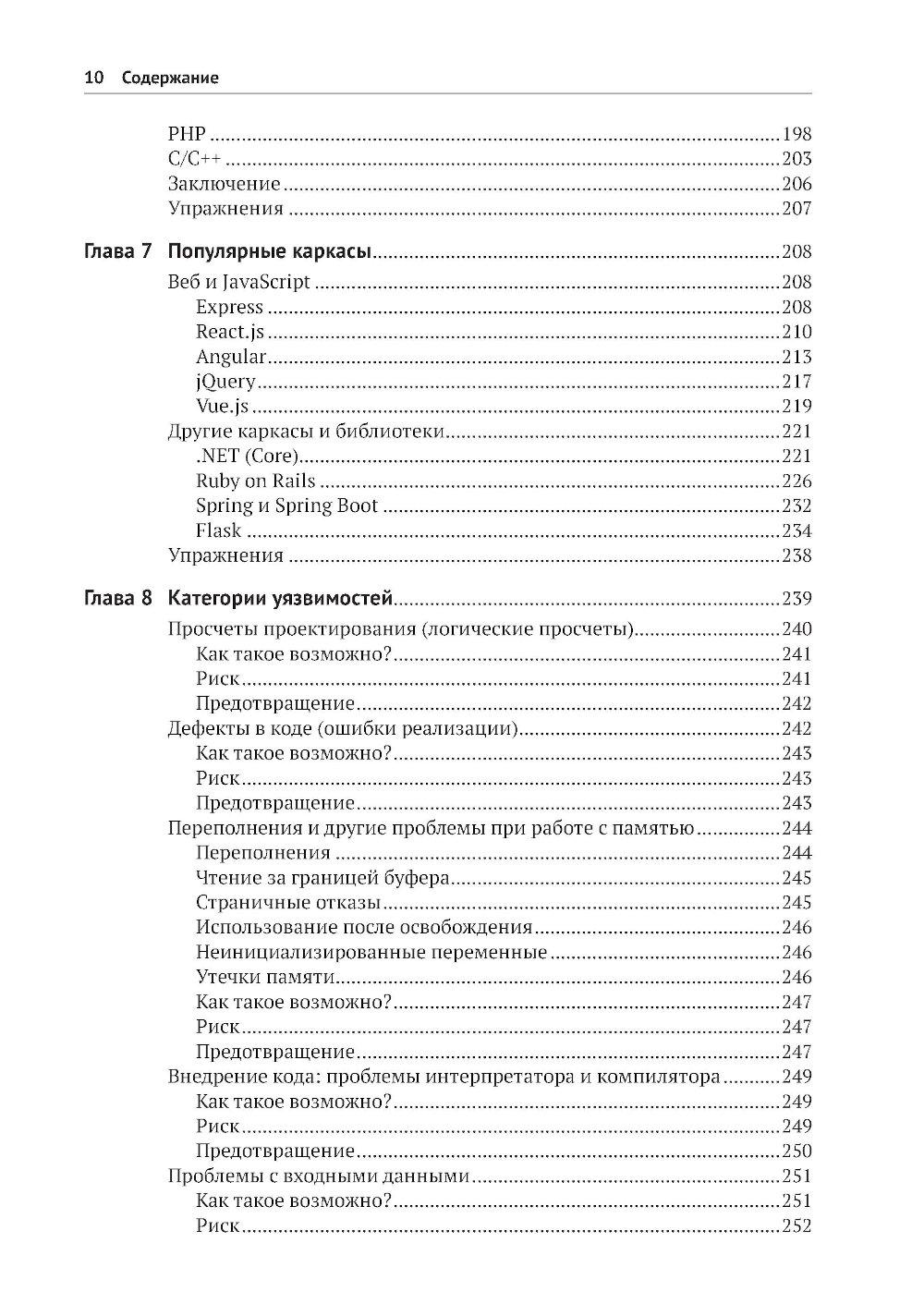 В этой книге, предлагающей принципиально новый подход к безопасной разработке кода, вы найдете полезные аналогии, истории из жизни вымышленных персонажей Алисы и Боба, примеры реальных ситуаций, технические объяснения и диаграммы, благодаря которым запутанные идеи и понятия безопасности приобретают легко усваиваемую форму, позволяющую начать применять их немедленно. Научитесь создавать безопасный код на таких популярных языках, как Python, Java, JavaScript и других. Получите опыт защиты таких каркасов, как Angular, .Net и React. Раскройте секреты борьбы с уязвимостями, основанные на заботе о безопасности своего кода с самого начала! Краткое содержание книги: - безопасное кодирование на Python, Java, Javascript, C/C++, SQL, C#, PHP и других языках; - безопасность в популярных каркасах Angular, Express, React, .Net и Spring; - рекомендации по обеспечению безопасности API, мобильных приложений, веб-сокетов, бессерверных приложений, IоТ-устройств и сетки служб; - основные категории уязвимостей, как они возникают, их риски и способы их избежать; - безопасный жизненный цикл разработки системы; - моделирование угроз, тестирование и анализ кода; - основы создания безопасного кода, применимые к любому языку и каркасу. Издание предназначено для широкой аудитории, включающей разработчиков ПО всех уровней, инженеров по безопасности, архитекторов программ и специалистов в области безопасности приложений. Знакомство с практическими примерами и конкретными приложениями углубит ваше понимание важнейших принципов безопасности и позволит прочно усвоить их.| Издательство | ДМК Пресс |