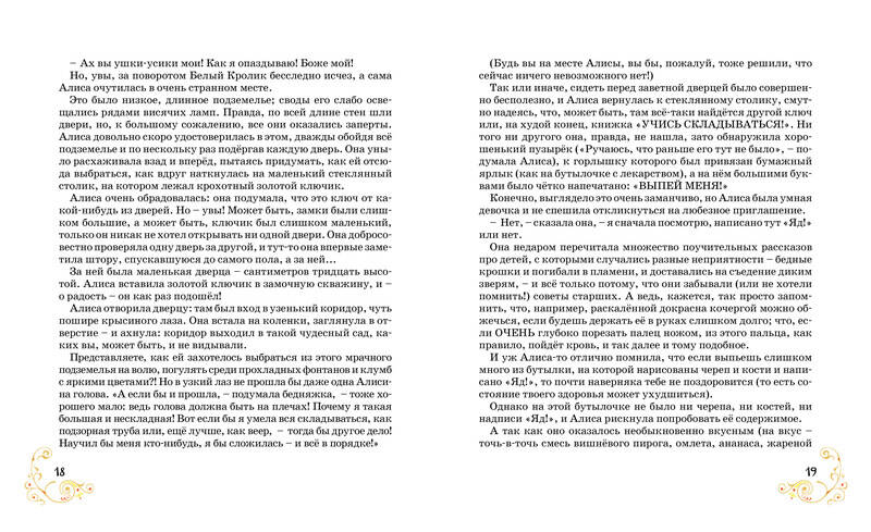 Знаменитая сказка ЛЬЮИСА КЭРРОЛЛА "АЛИСА В СТРАНЕ ЧУДЕС" вышла почти сто пятьдесят лет назад и принесла своему автору мировую славу. Теперь уже невозможно представить себе человека, который в детстве не прочитал бы историю про любознательную девочку Алису, смело прыгнувшую в нору за Белым Кроликом. Борис Заходер, замечательный детский писатель, блестяще перевёл "АЛИСУ В СТРАНЕ ЧУДЕС" на русский язык и написал в предисловии, "что, хотя эта сказка для детей, пожалуй, больше детей любят её взрослые…". Вот такая необычная сказка. Если вы почему-то ещё не успели её прочитать, скорее открывайте книгу, чтобы вместе с Алисой отправиться за удивительными приключениями.| Издательство | Азбука Издательство |
