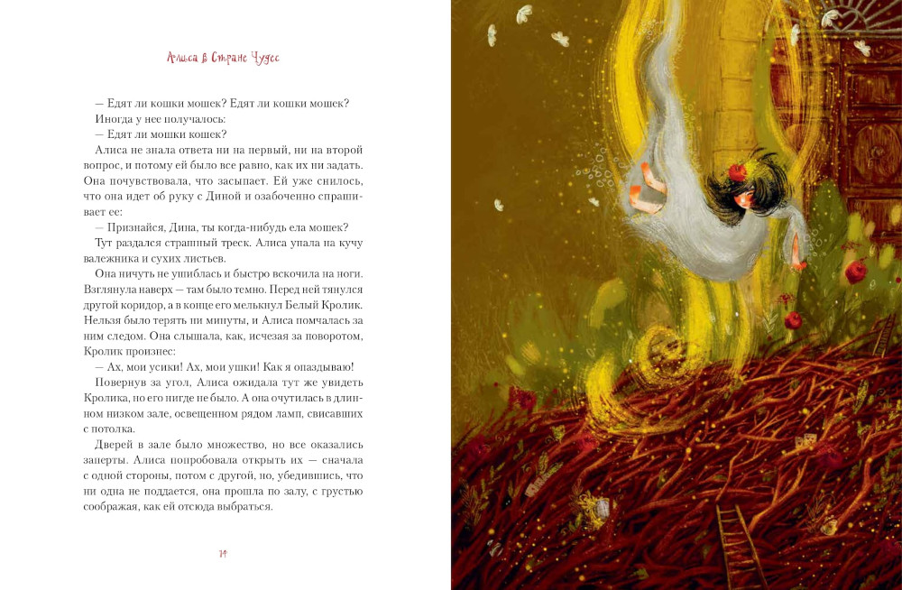 Погоня за Белым Кроликом и встреча с улыбчивым Чеширским Котом, Безумное чаепитие с Болванщиком и рассуждения о жизни от Синей Гусеницы, игра в крикет розовыми фламинго и ежами вместо мячей и великое противостояние с самой Червонной Королевой. Легендарные приключения Алисы в Стране Чудес, с которыми мы сами познакомились когда-то в детстве, обязательно полюбят и наши дети. А красочная и по-настоящему волшебная визуализация современной художницы Марины Будановой позволит погрузиться в знакомый мир так, будто все это случилось на самом деле.| Издательство | Metamorphoses |