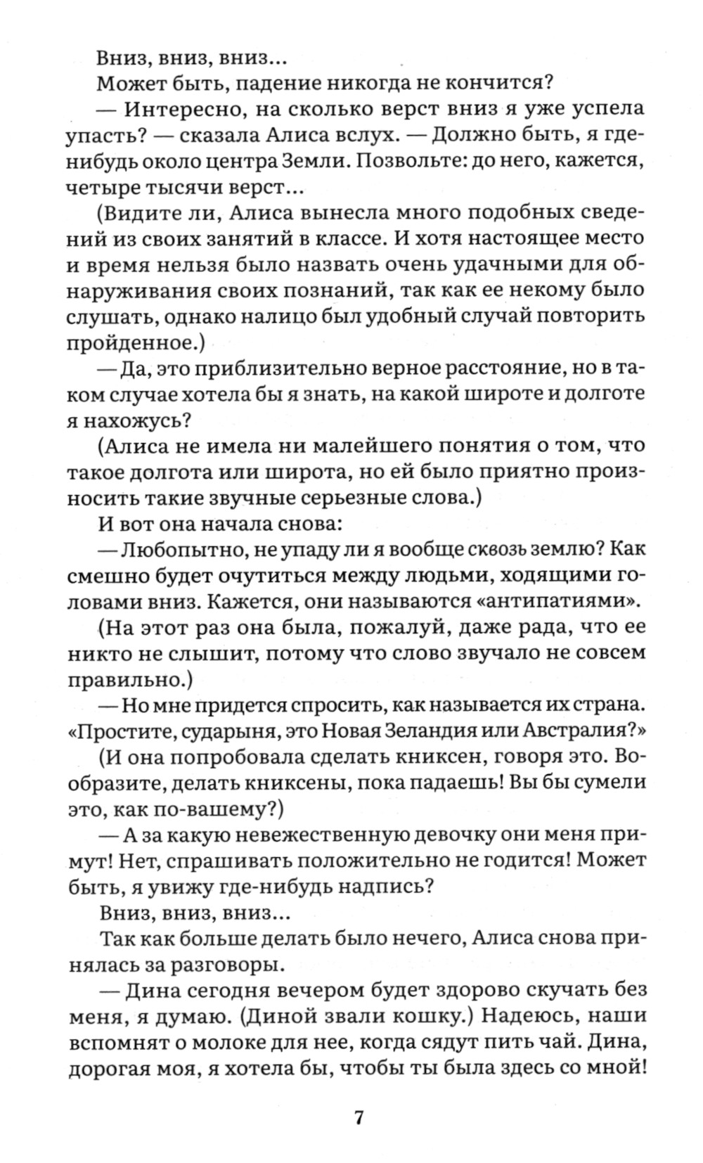 Заскучав в жаркий солнечный день, любопытная Алиса отправляется на поиски приключений, которые, конечно же, находит. Провалившись в кроличью нору, она оказывается в настоящей Стране Чудес, где переживает множество удивительных приключений, обретает необычных друзей и не менее необычных врагов. В данном издании «Алиса в Стране Чудес» представлена в специально адаптированном для русского читателя переводе Анатолия Адольфовича Д'Актиля 1922 года. Текст сопровождается иллюстрациями британского художника сэра Джона Тенниела, который был первым иллюстратором книг Льюиса Кэрролла о приключениях Алисы. Для широкого круга читателей.| Издательство | Проспект |