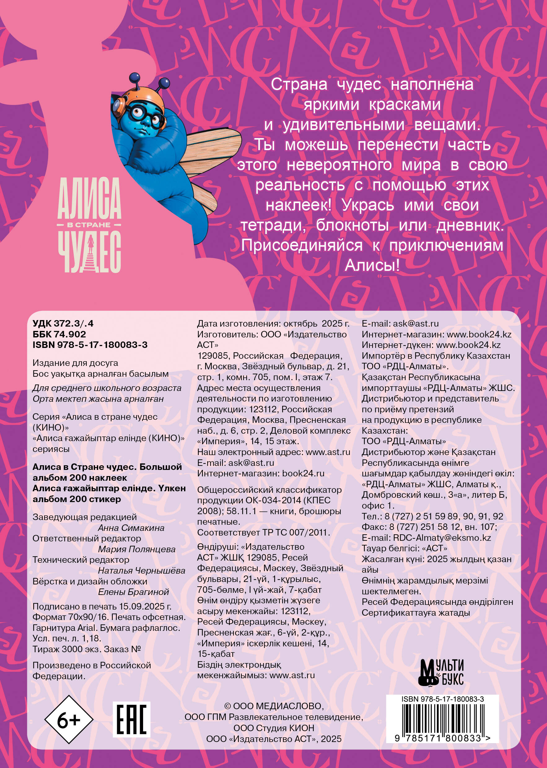Аннотация: Алиса в Стране чудес. Большой альбом 200 наклеек