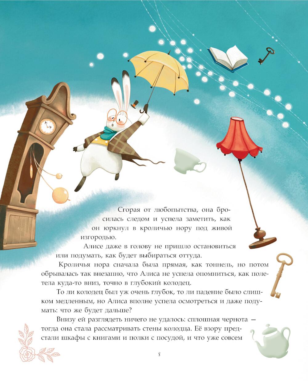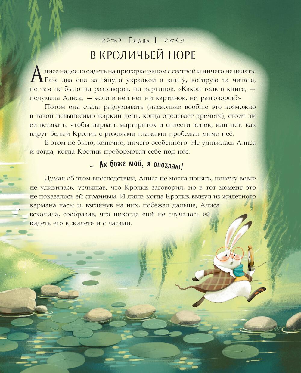 Издание подарочного формата в твёрдом переплёте с золотой фольгой. Запечатанные форзацы. Плотная белая бумага. Чёткий, удобный для чтения шрифт. Полноцветные иллюстрации. Что вы знаете об «Алисе в Стране чудес»? Эта удивительная сказка, увидевшая свет 160 лет назад, ежегодно обретает всё новых и новых поклонников, которые читают её на 200 языках мира. Необыкновенное путешествие любознательной девочки Алисы очаровывает не только детей, но и взрослых, стремящихся снова взглянуть на мир глазами ребёнка. Горячим поклонником книги Льюиса Кэрролла был знаменитый писатель, мастер бессмертных парадоксов Оскар Уайльд. Сказочные уголки и удивительных обитателей чудесной страны изучила и нарисовала современная итальянская художница Даниэла Вольпари. Благодаря её мастерству перед нами, как живые, возникают Белый Кролик и Синяя Гусеница, задорно пляшут Грифон и Черевродепаха, а в воздухе то появляется, то исчезает загадочная улыбка Чеширского кота. Классический перевод Александры Рождественской.| Издательство | Эксмо |
